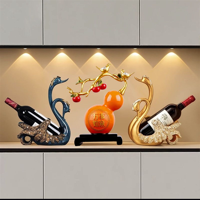 新中式天鹅酒架摆件玄关展示柜客厅电视柜葫芦装饰品乔迁新居礼品