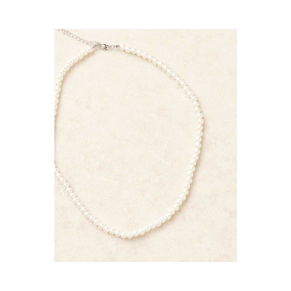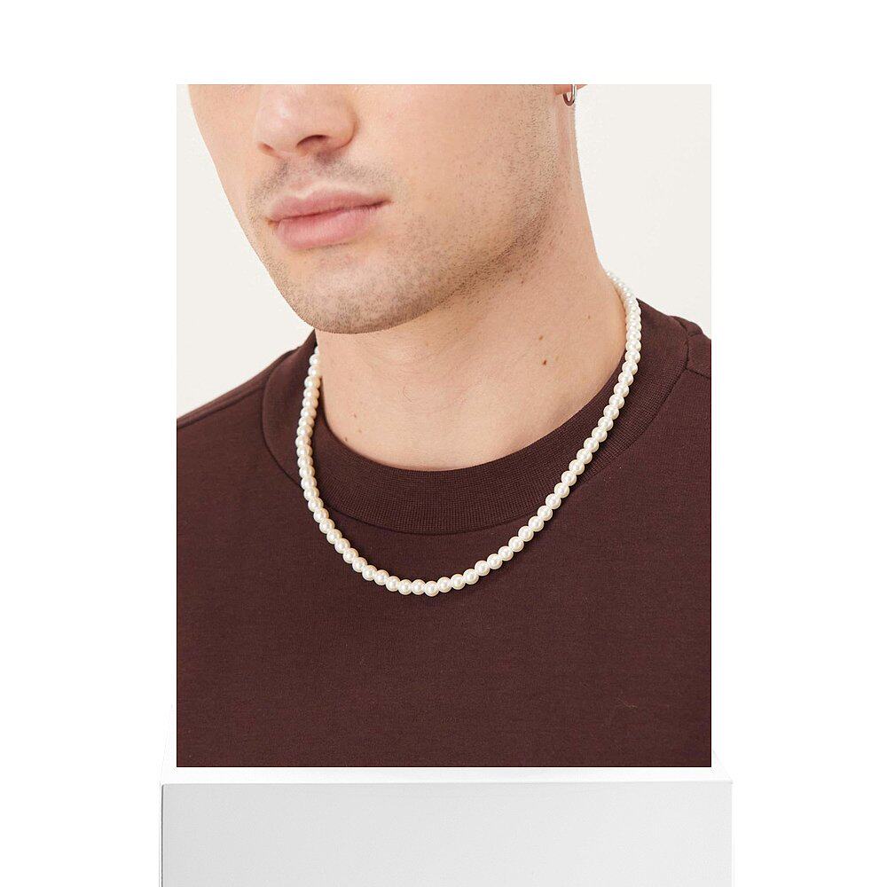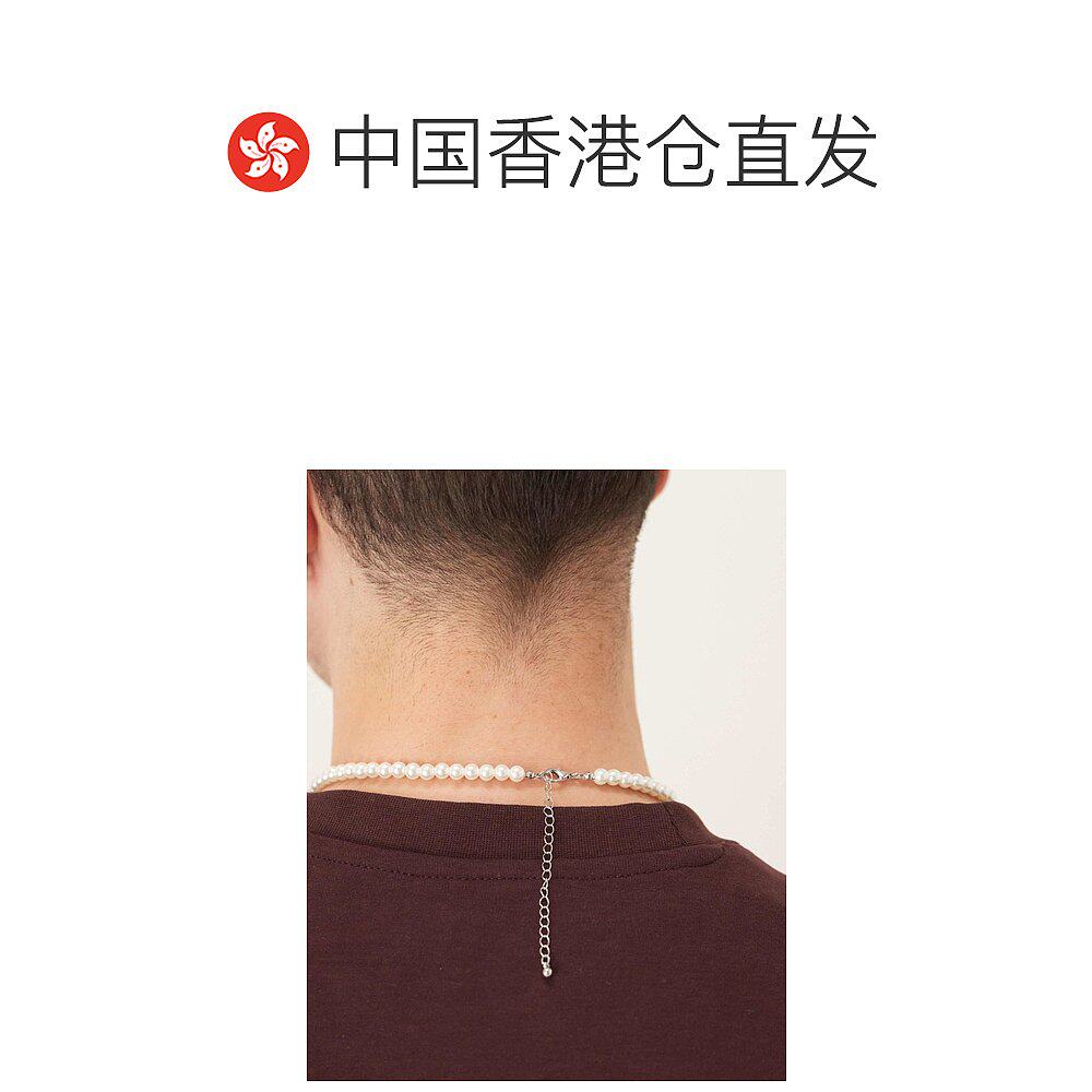 1h可退 香港直邮ASOS 男士 6mm 设计短款玻璃人造珍珠项链(白色)