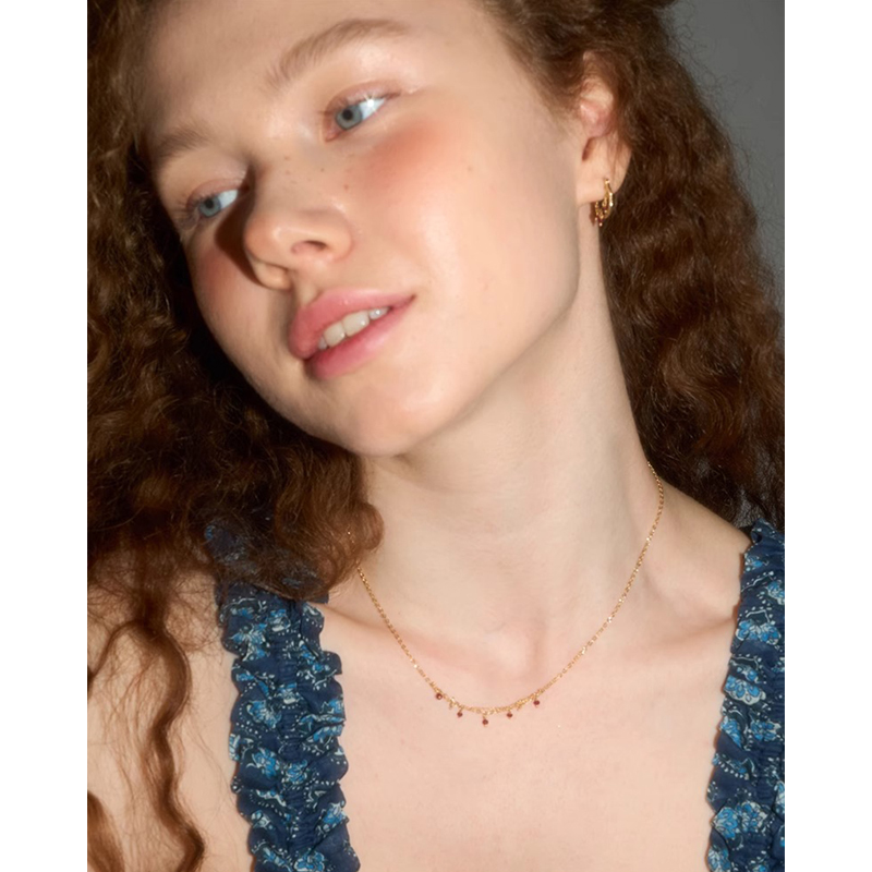 肌肤链系列手工14k包金baby ruby天然小红宝石项链锁骨