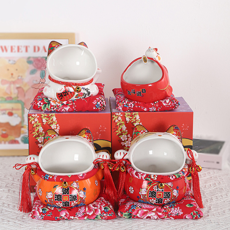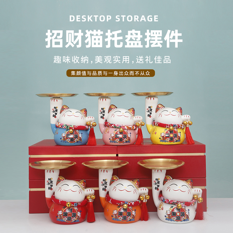 家居装饰陶瓷玄关鞋柜招财猫摆件开业客厅乔迁收纳钥匙收纳盒进门