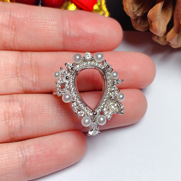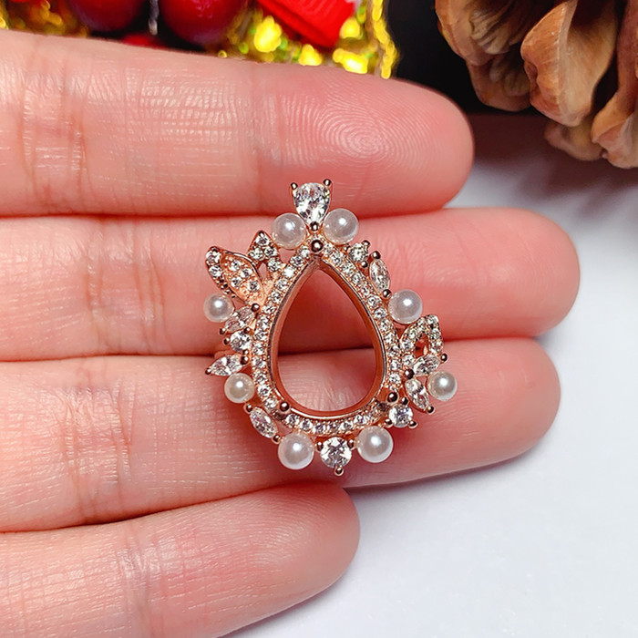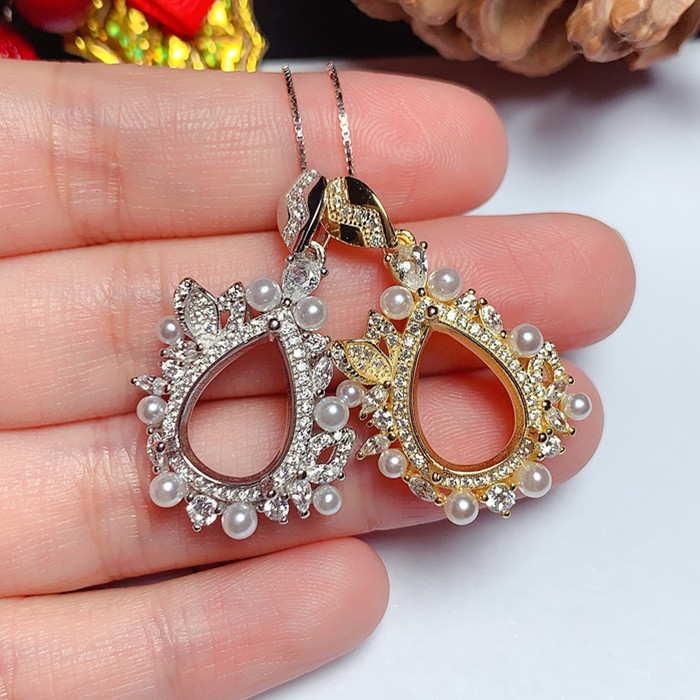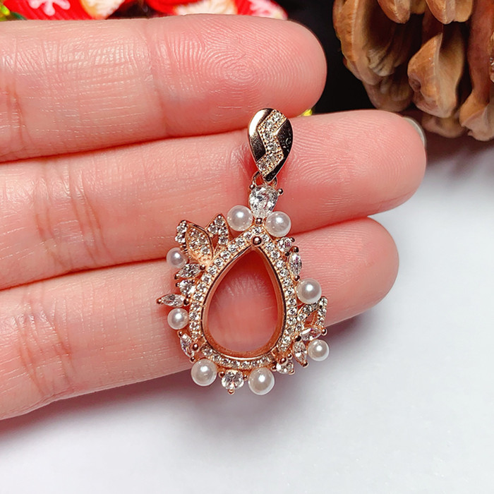 s925银戒指吊坠空托水滴形10*14mm豪华大气 精美时尚 饰品 m