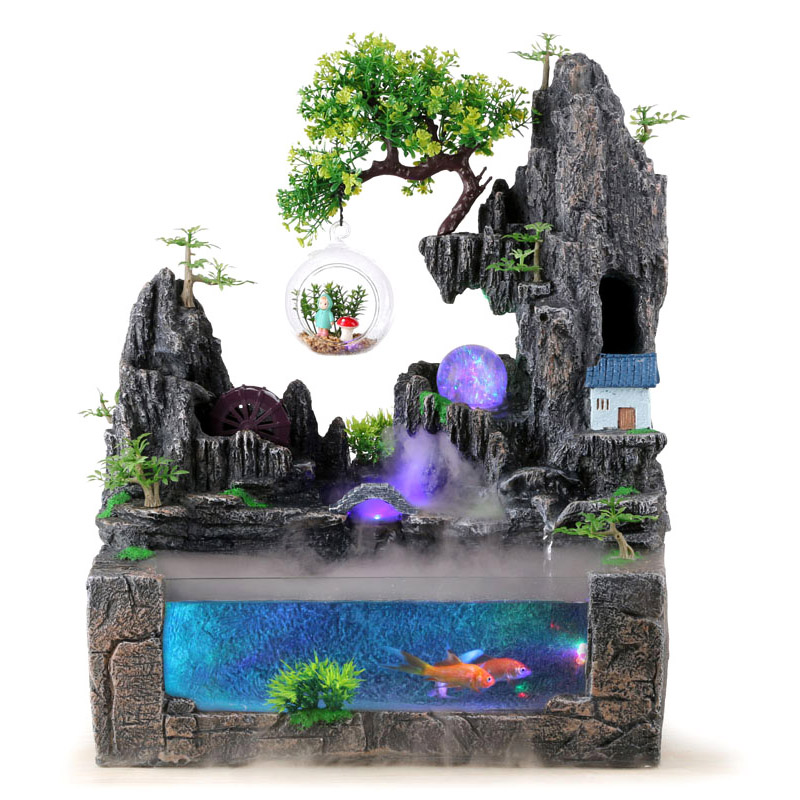 假山流水喷泉风水轮鱼缸水景家居装饰电视柜客厅开业礼品招财摆件