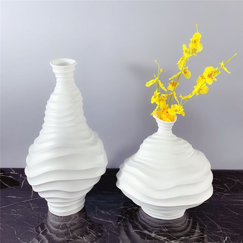 黑白色现代简约波浪条纹树脂异形花瓶摆件家居客厅酒店会所装饰品
