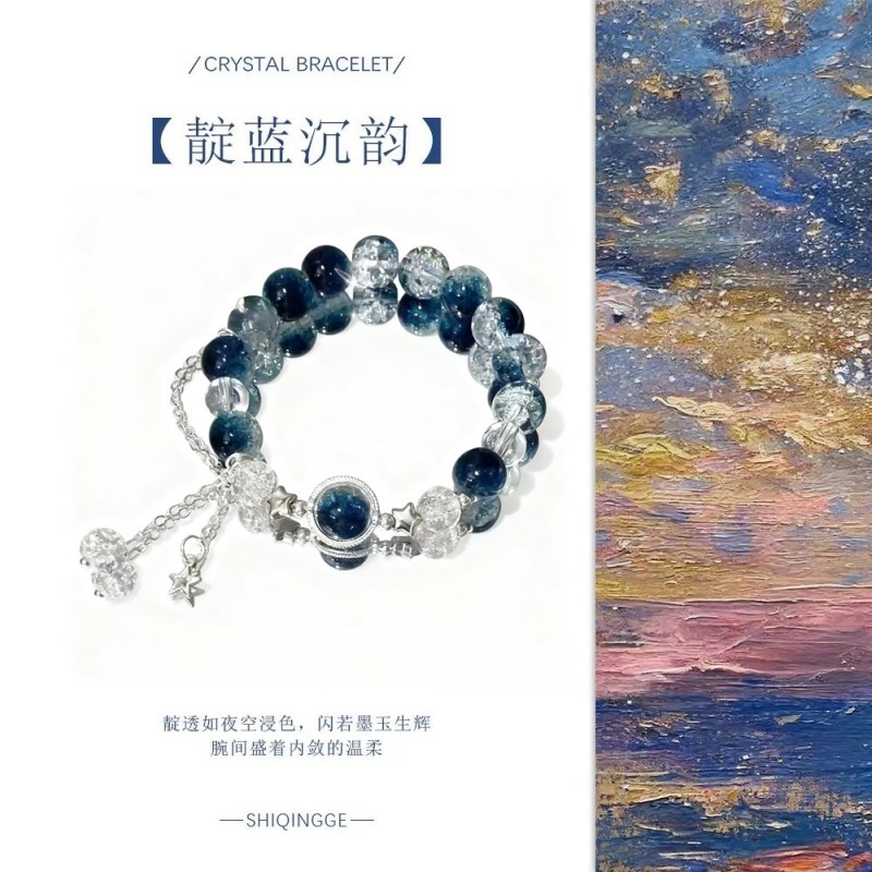 【蓝色幻想】天然水晶手串情侣款气质蓝晶石手链闺蜜情侣手饰