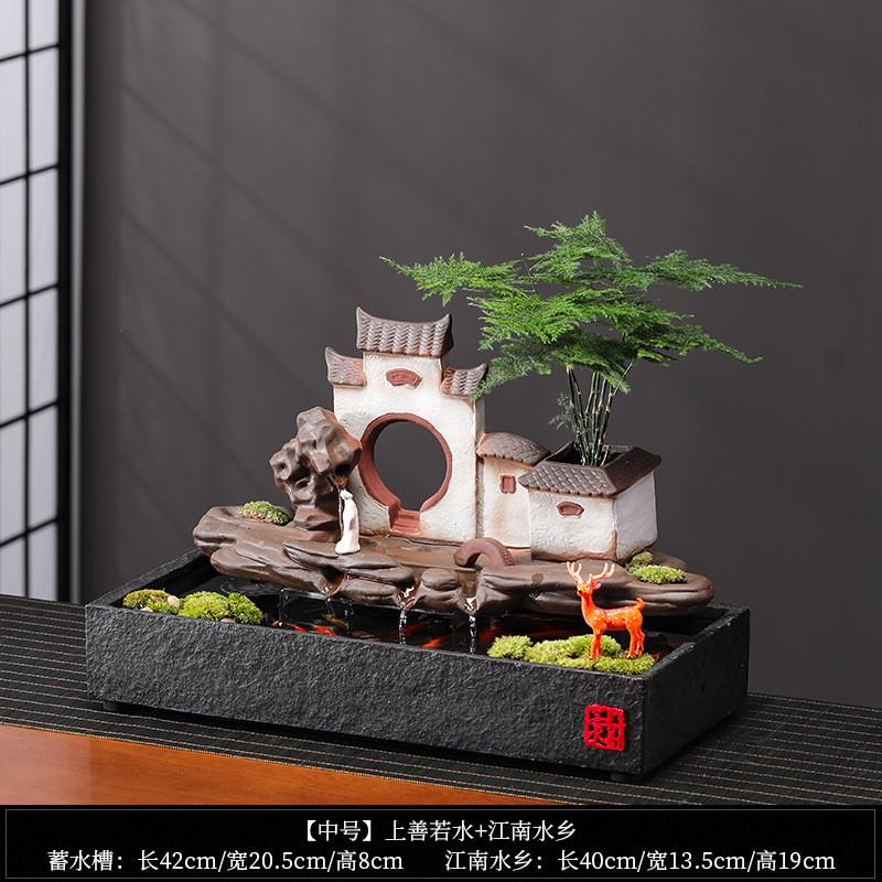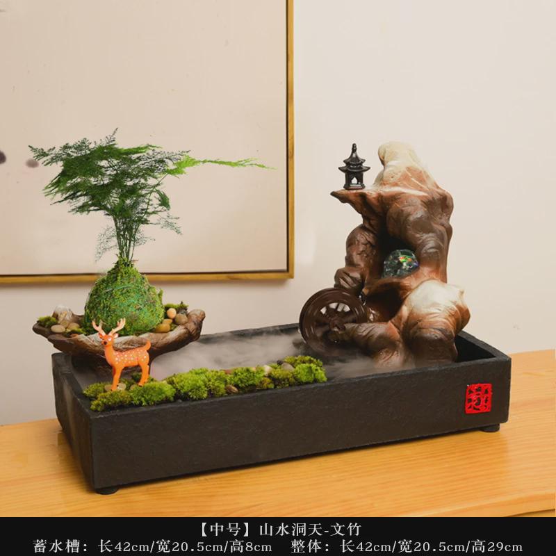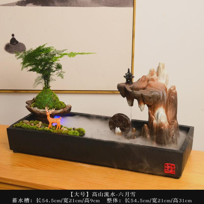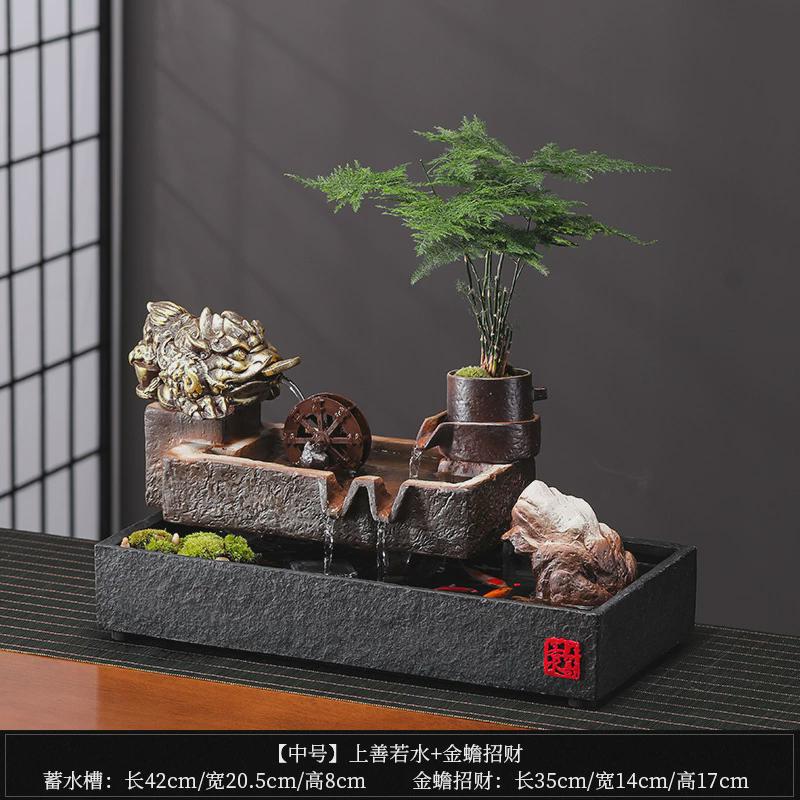 w~陶瓷假山流水生财摆件桌面鱼缸循环水客厅玄关办公室装饰摆设礼