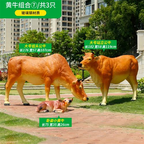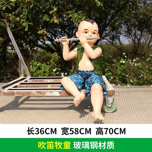 农耕牧童骑仿真黄牛雕塑动物模型摆件园林户外玻璃钢草坪景观装饰