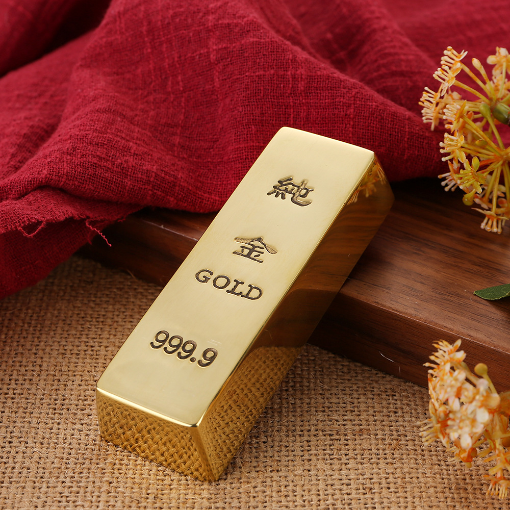 仿真实心铜金条模型影视道具铜金元宝铜砖工艺品家居摆件厂家