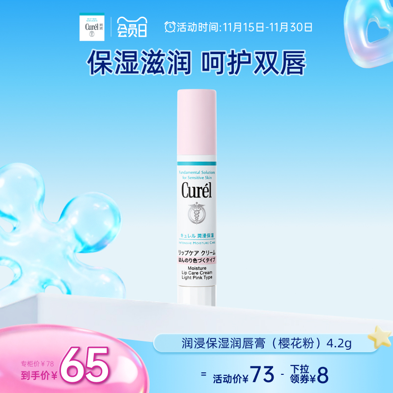 【会员日】珂润保湿柔润唇膏4.2g滋润补水男女透明色/樱花粉