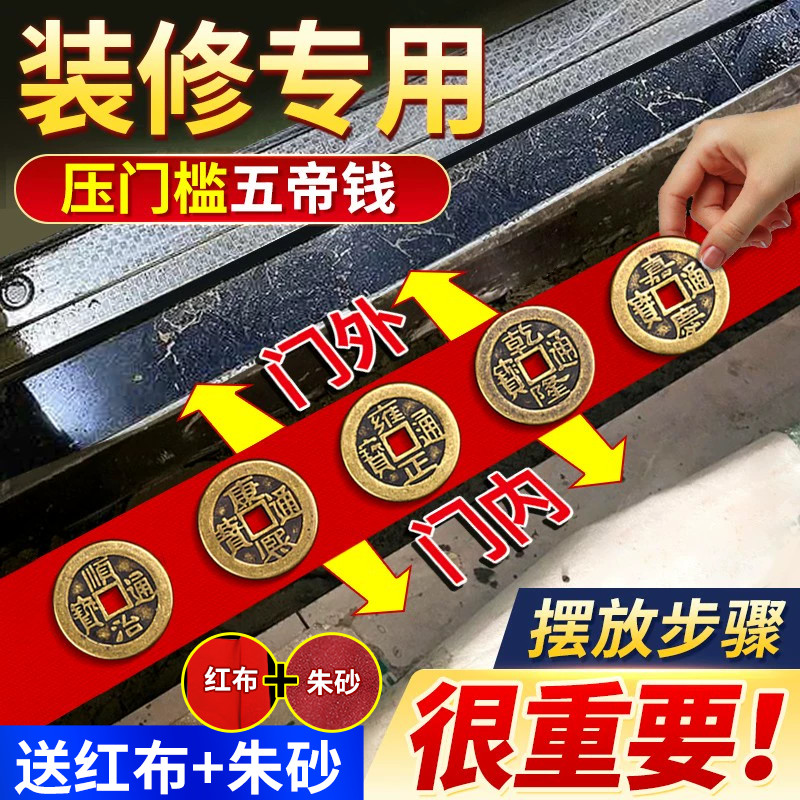 五帝钱压门槛入户门过门石下压的五帝钱进门槛石装修铜钱加厚