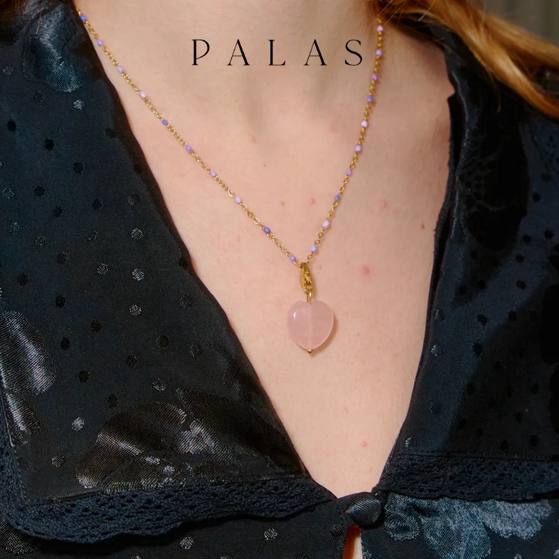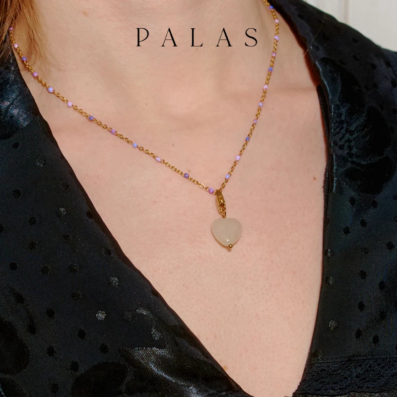 法国PALAS正品代购彩虹色天然石玉石爱心釉面吊坠搭配耳钉手项链