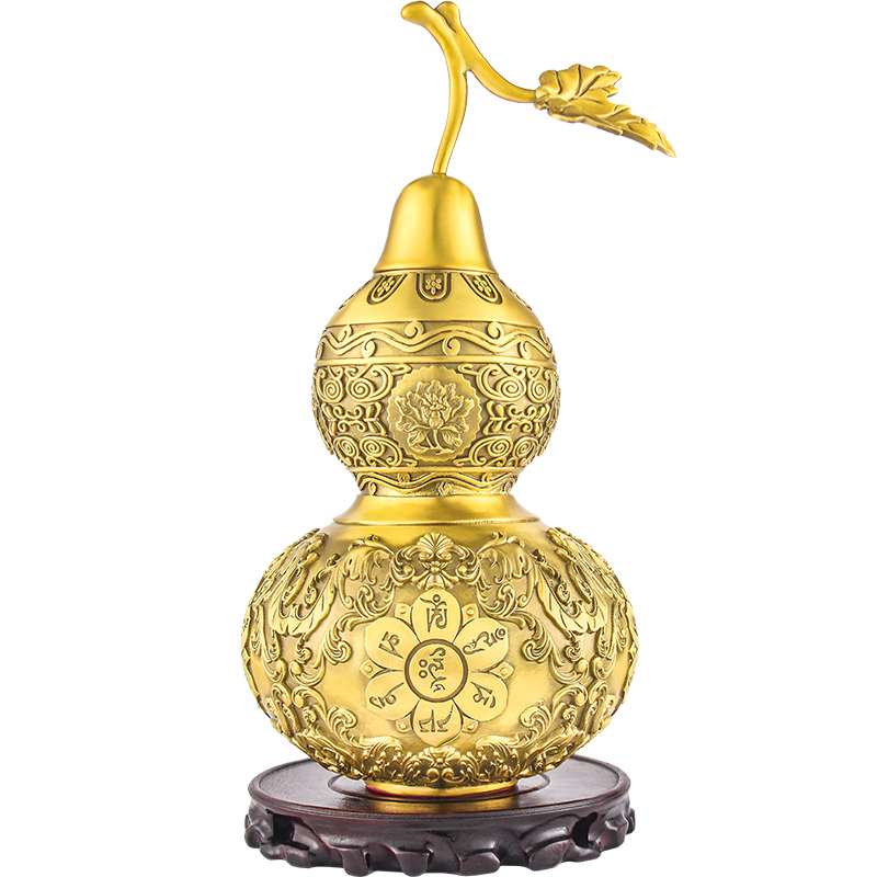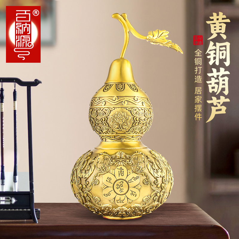 铜葫芦摆件纯黄铜六字真言葫芦开口盖空心家居客厅玄关装饰品大号