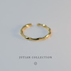 JUTIAN S925纯银戒指波浪扭纹开口尾戒金色细戒 女个性指环关节戒