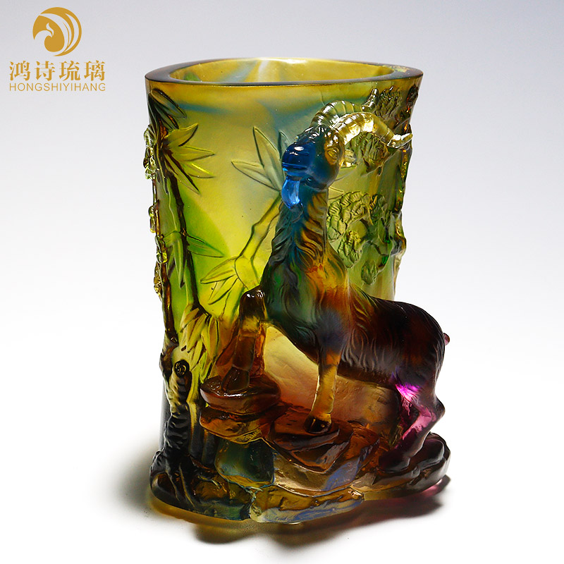 琉璃生肖羊笔筒办公室装饰摆件老板桌F高档生日礼物高档送领导老