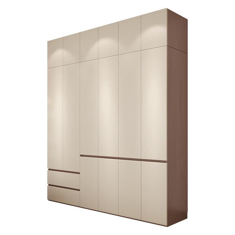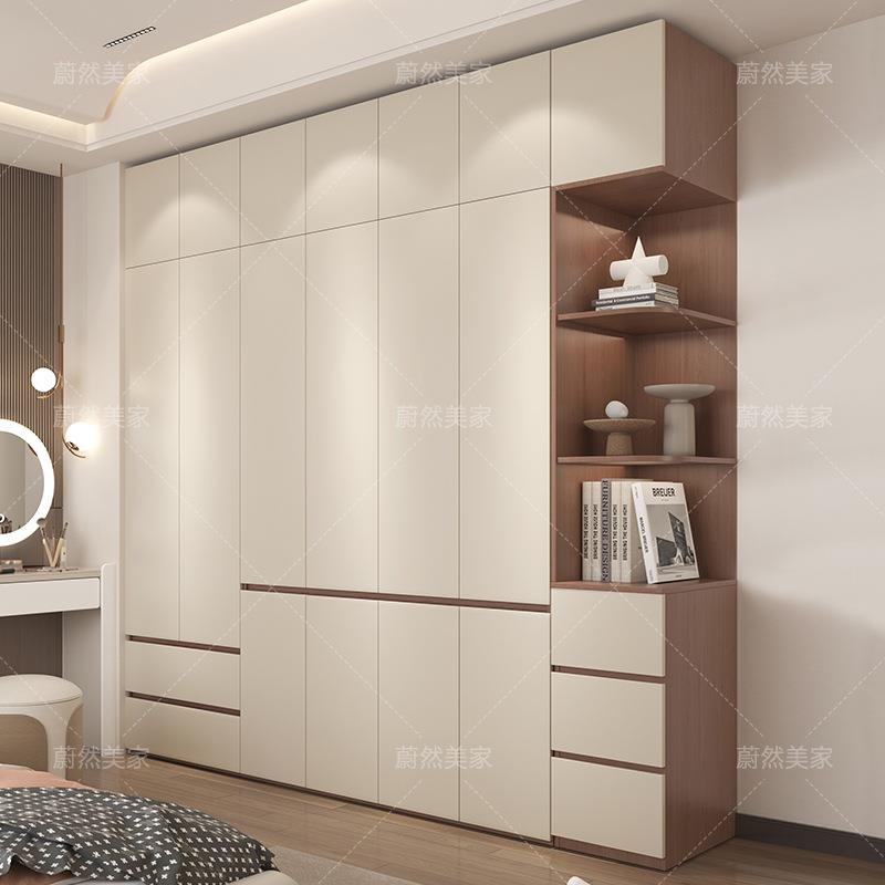胡桃木色分段式免拉手一门到顶衣柜简约家用卧室经济型收纳衣橱