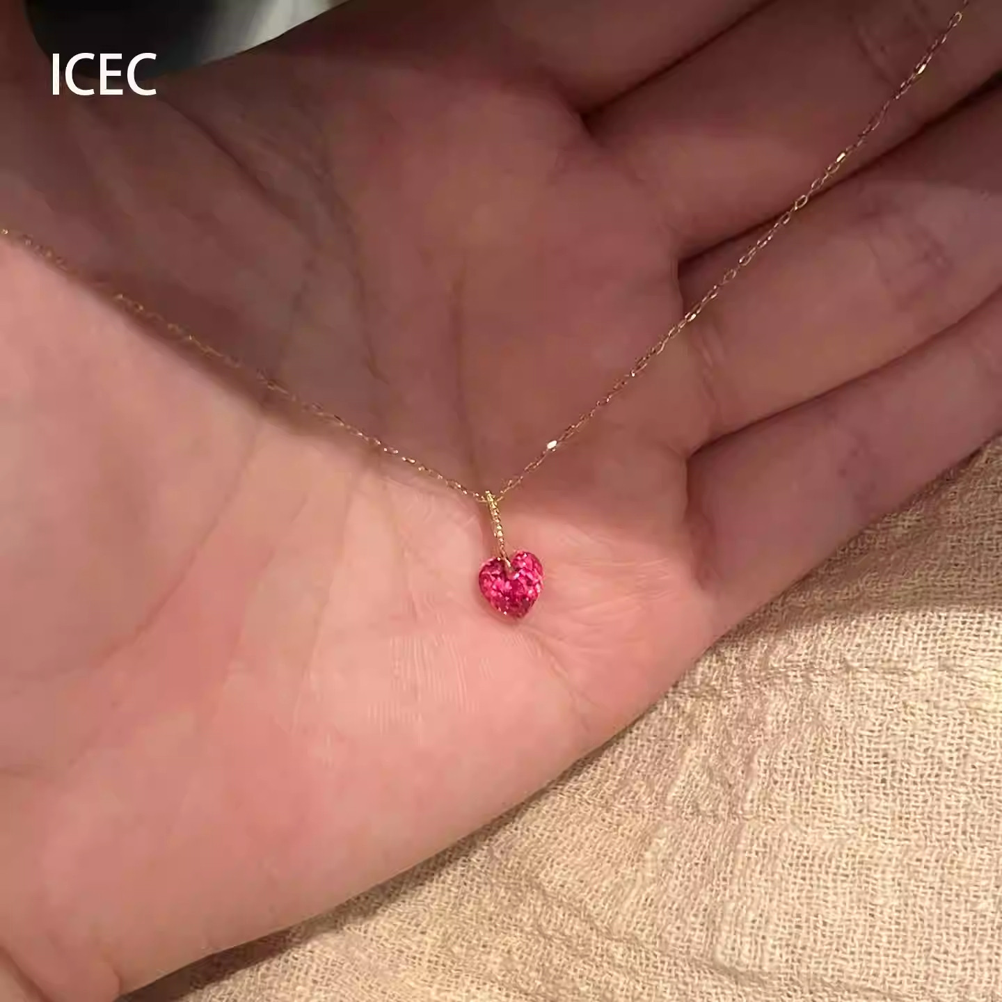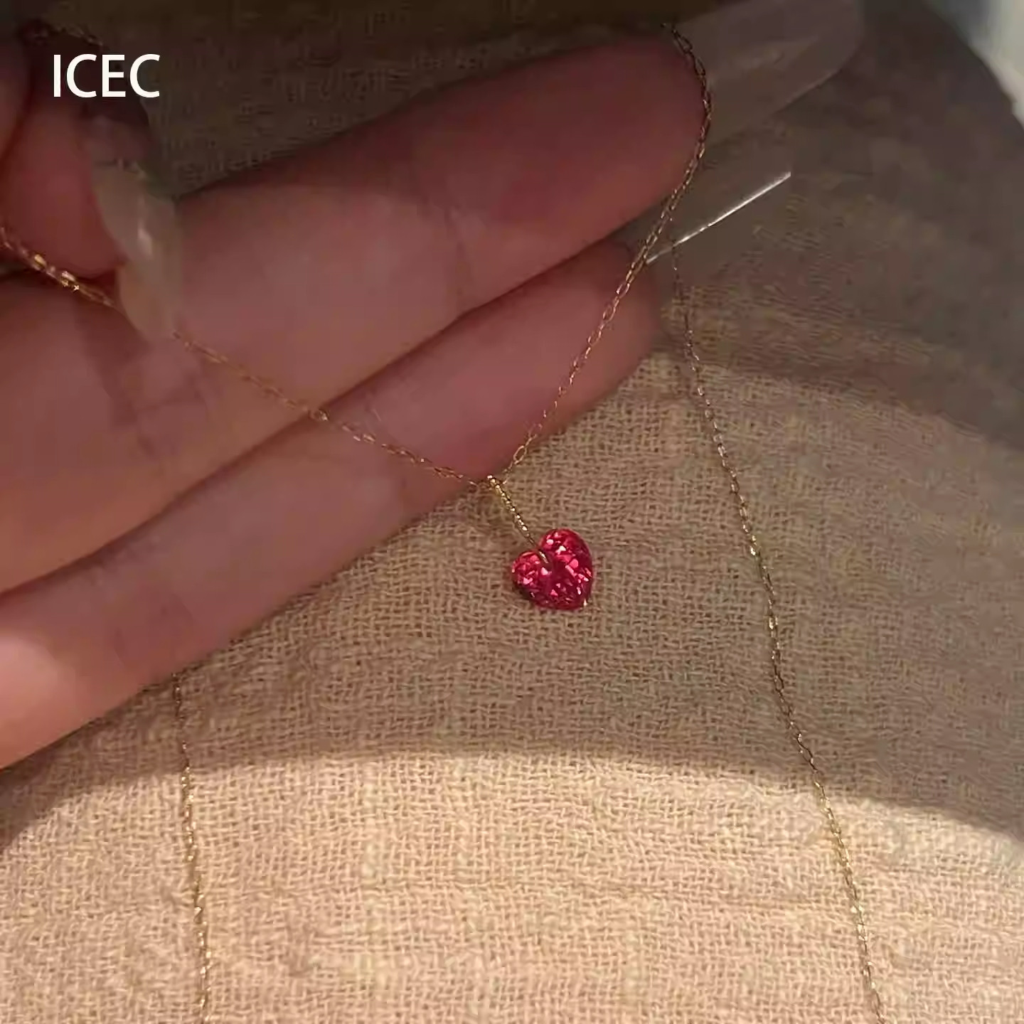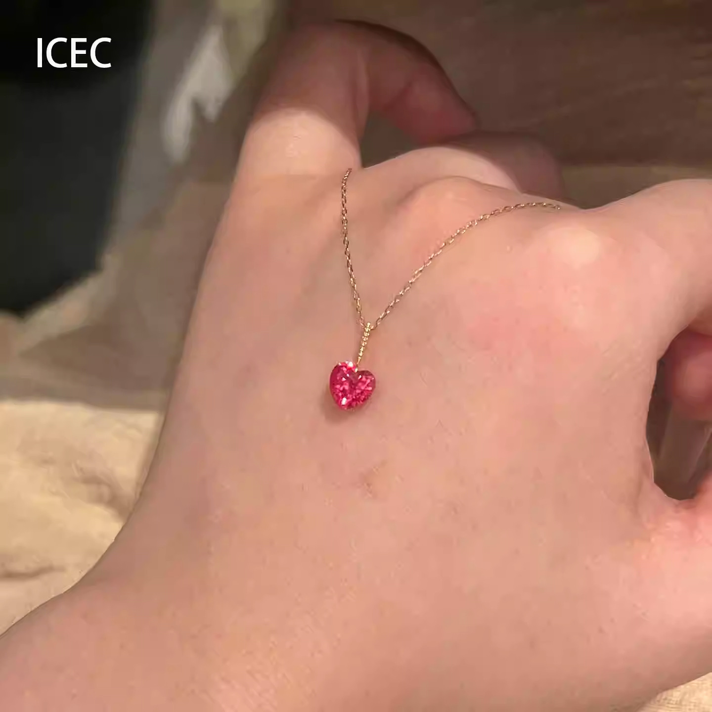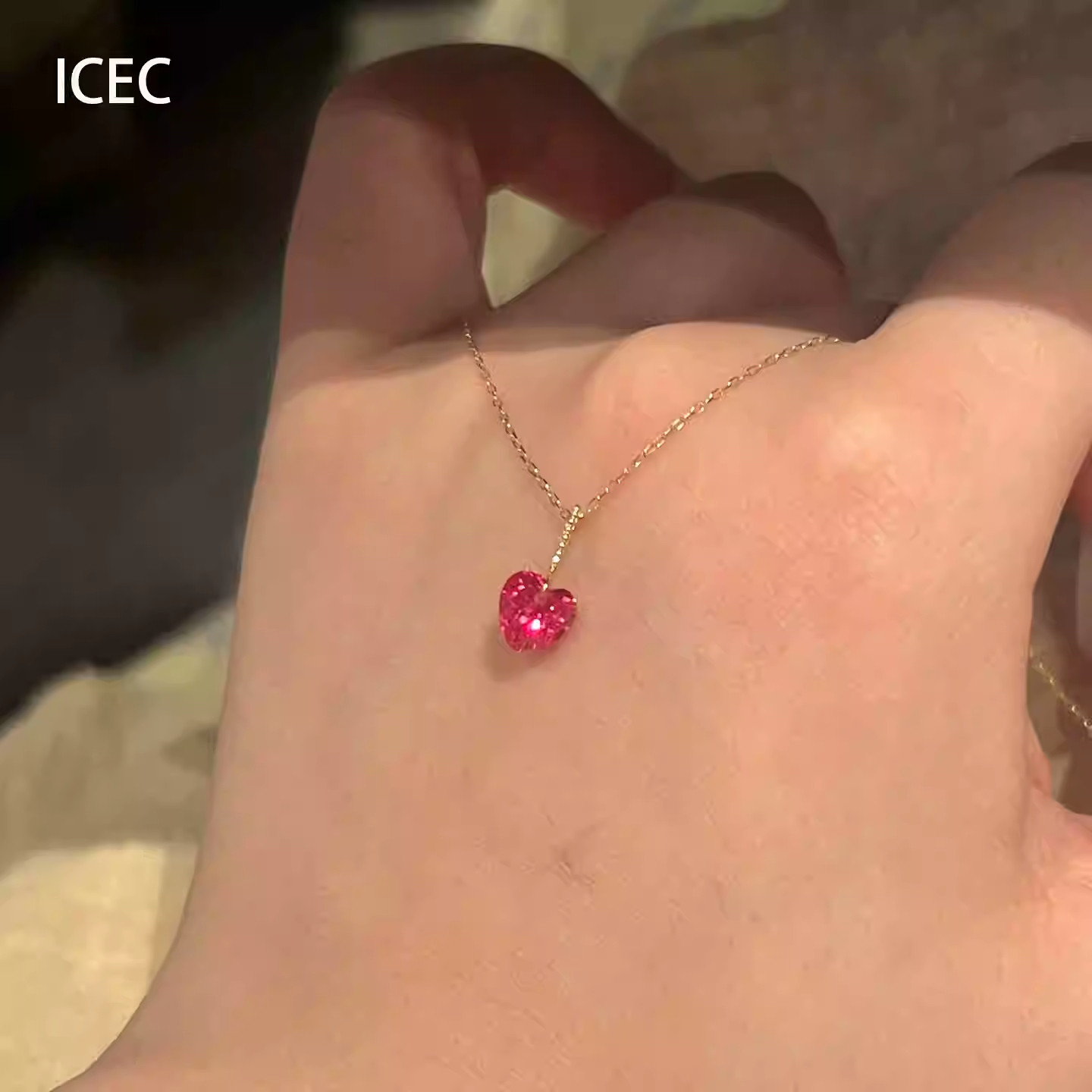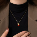 简约红色爱心锆石吊坠项链配饰女小众设计颈链气质通勤百搭锁骨链