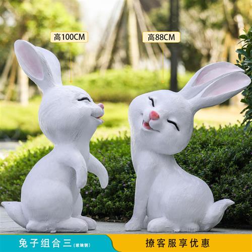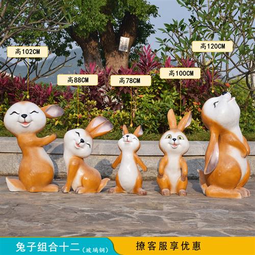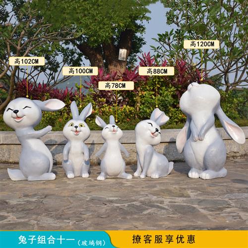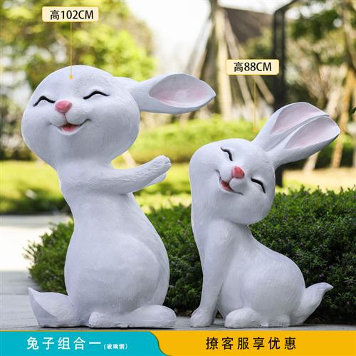 玻璃钢卡通兔子雕塑户外花园商场楼盘校园景观装饰品兔子摆件