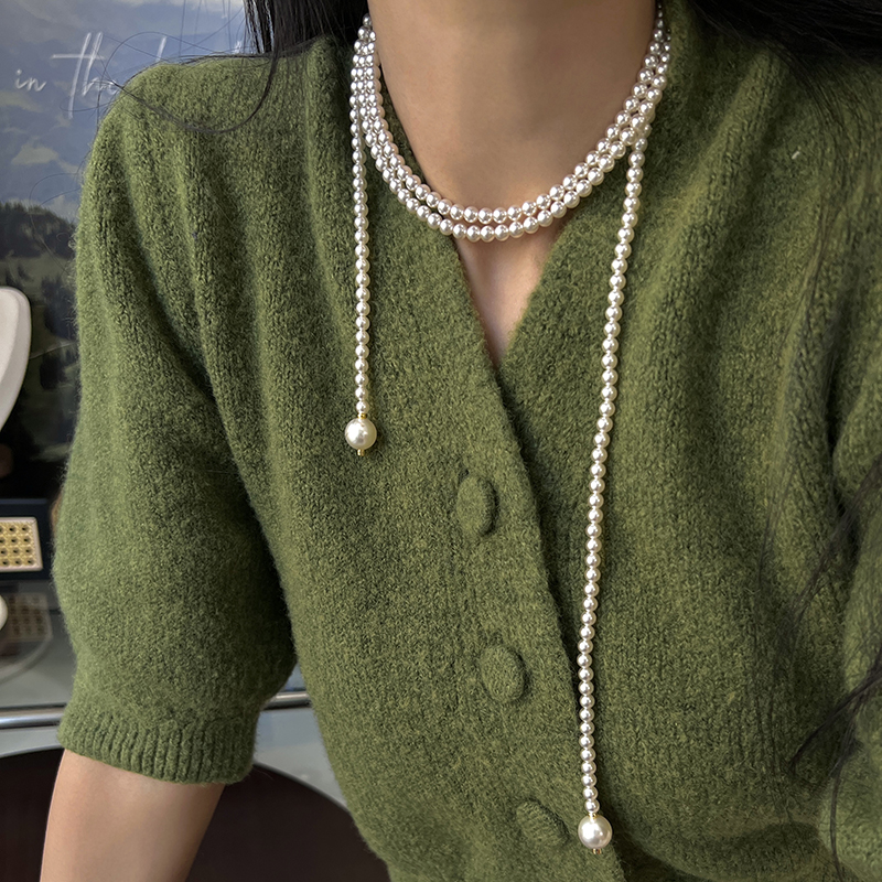 方糖家 多种戴法经典白珍珠长款项链小众独特高级毛衣链2024新款
