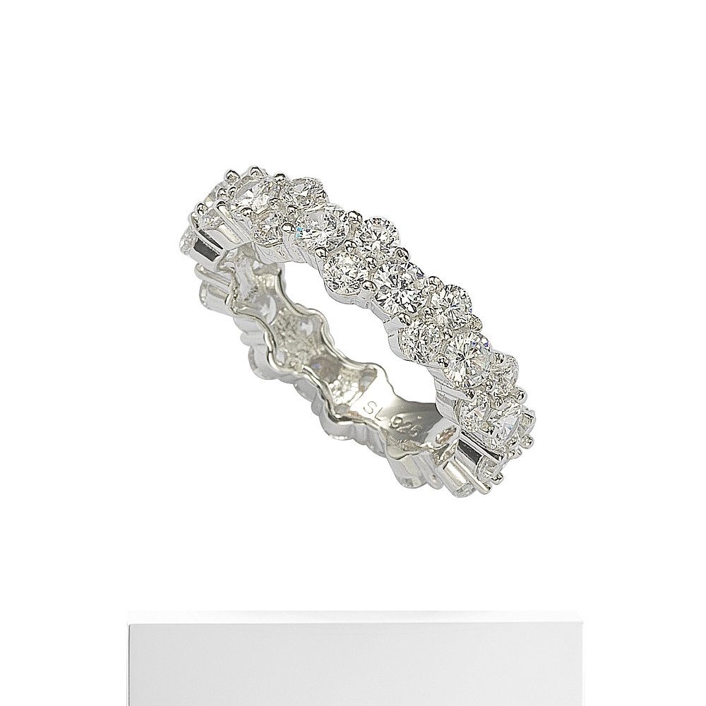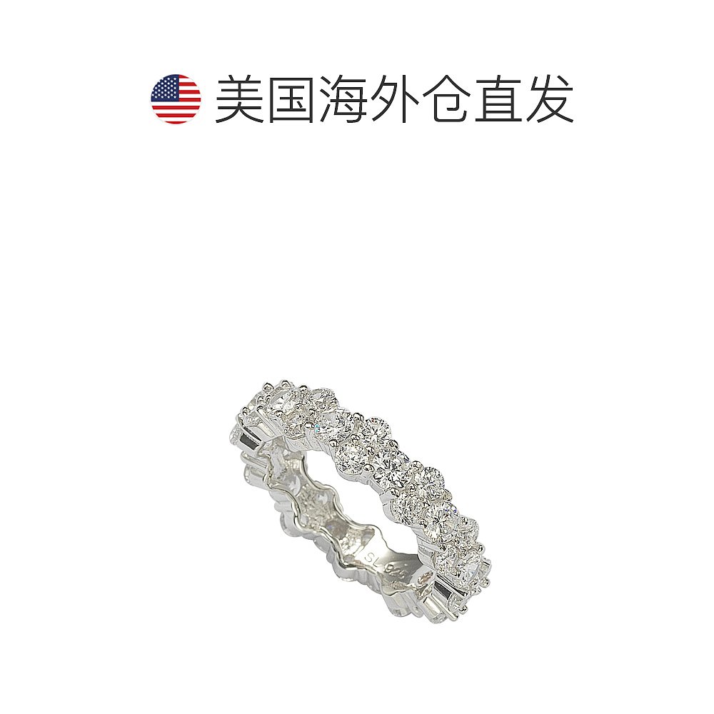 自营 Suzy Levian 纯银白色方晶锆石圆形切割永恒戒指 - 白色 美