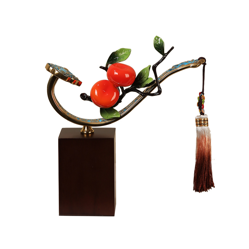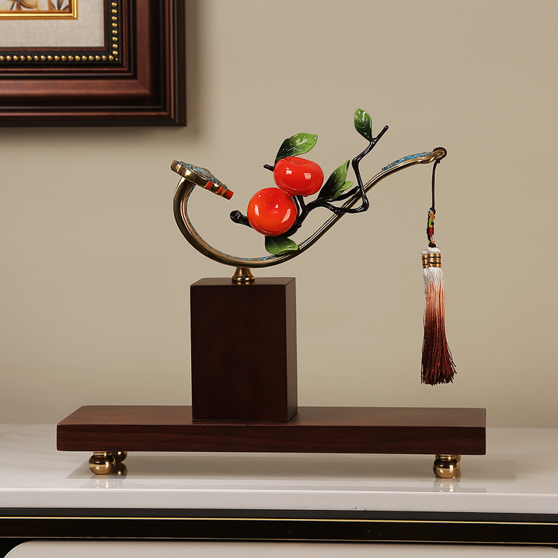 纯铜摆件事事如意柿子新中式客厅电视柜博古架装饰办公室乔迁礼品