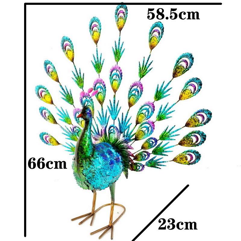 室外造景道具装饰太阳能灯闪烁花园户外铁艺动物摆件孔雀开屏雕塑
