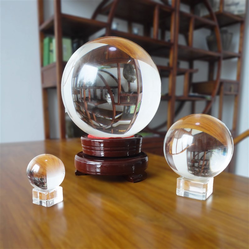 黄色水晶球摆件白紫红透明圆球乔迁新居家居客厅办公室店铺开业