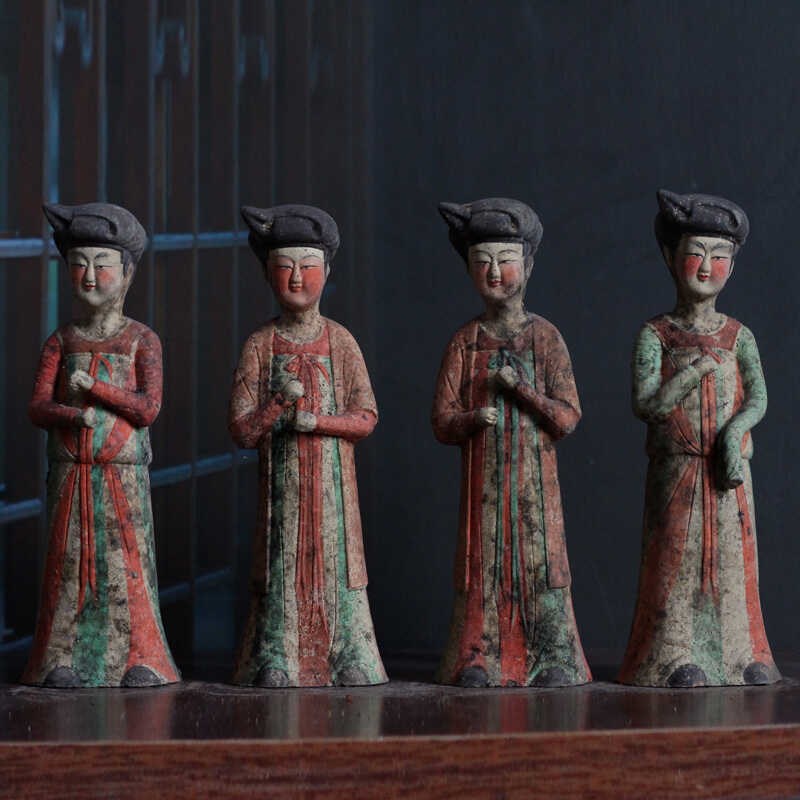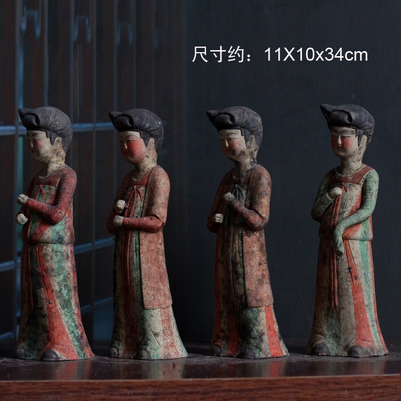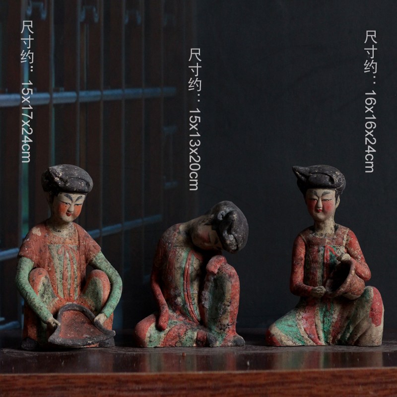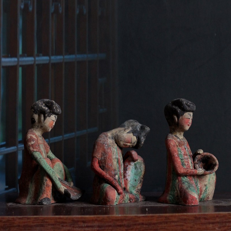 唐代陶俑乐器g俑摆件彩绘仕女奏乐俑古玩收藏中式客厅博古架摆件
