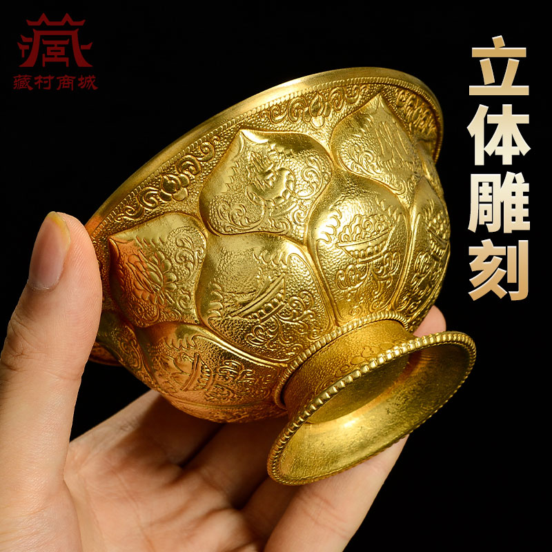 铜佛前供水杯财神供水杯八吉祥供杯七供杯高脚用品水杯