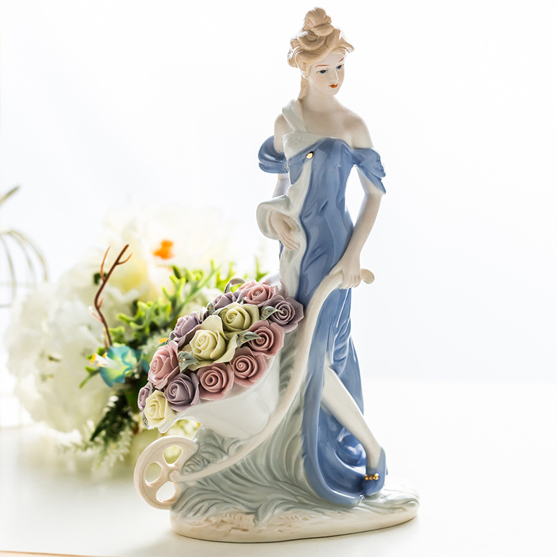 北欧装饰品人物玫瑰花女郎摆件现代家居客厅卧室酒柜玄关陶瓷摆设
