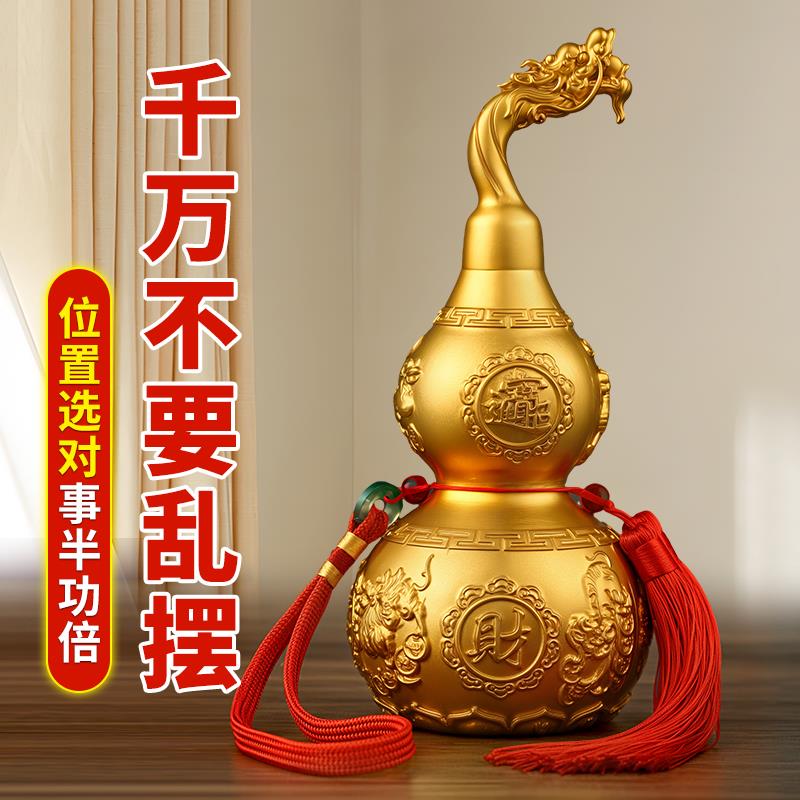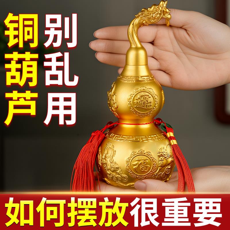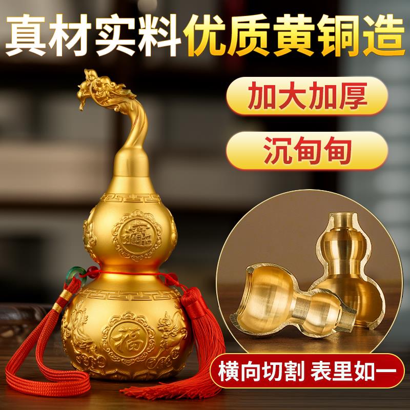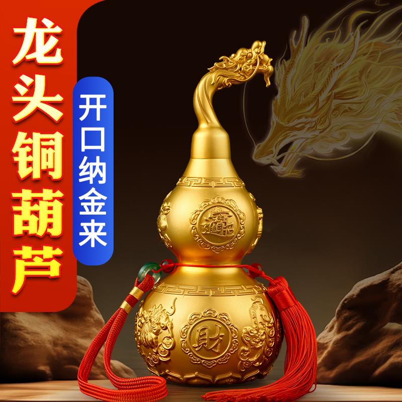 带龙头的铜葫芦摆件开口的铜胡卢开盖空心铜葫芦挂件五帝钱装饰品
