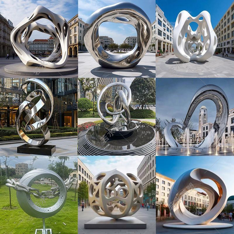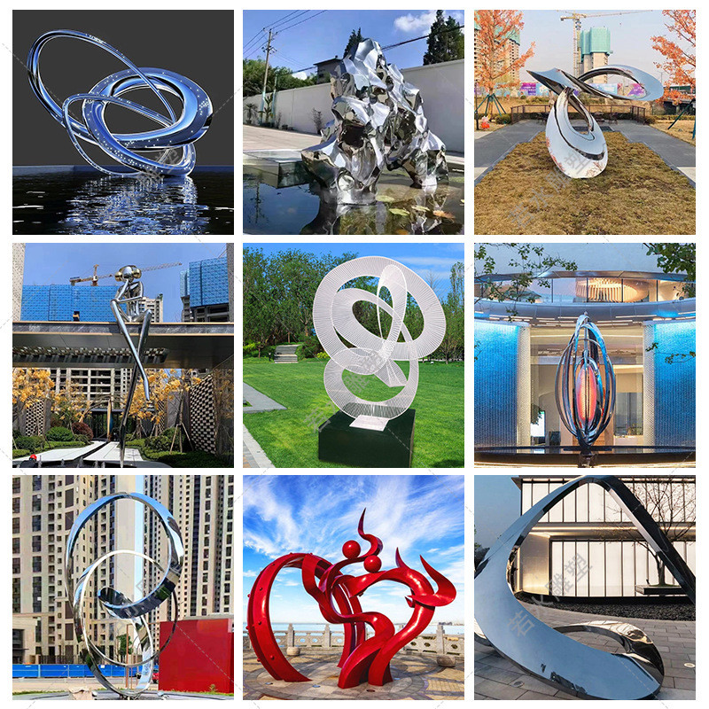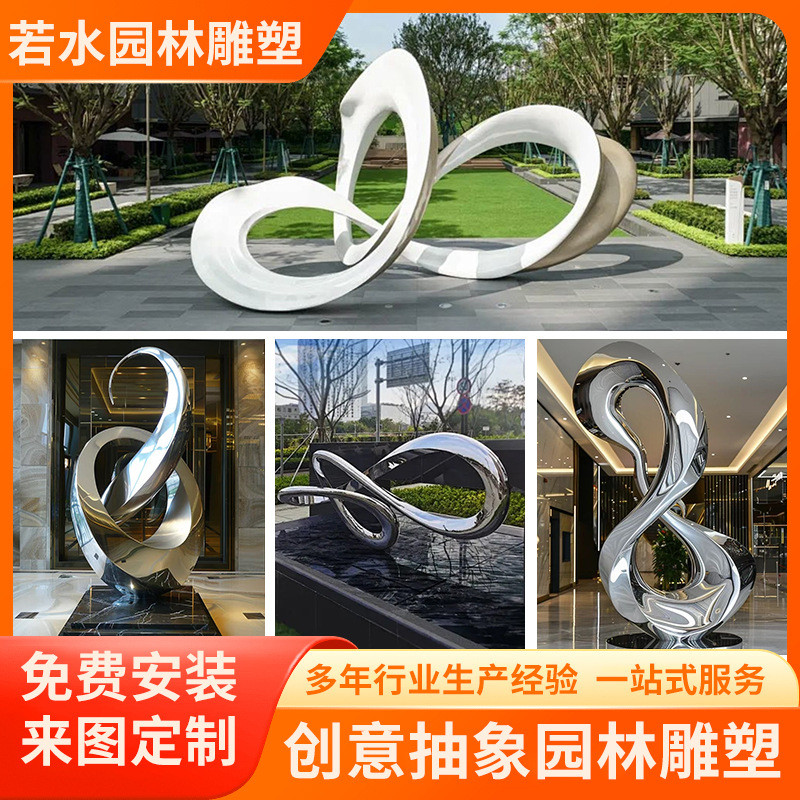 不锈钢雕塑镜面抽象异形水景雕塑定制户外创意城市发光飘带雕塑