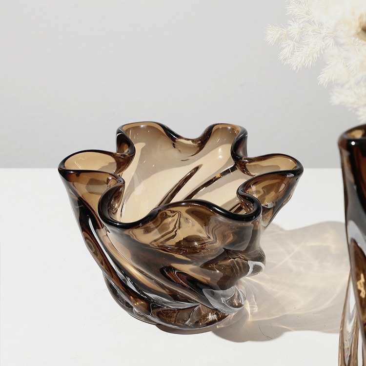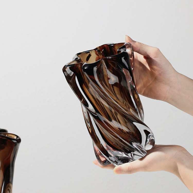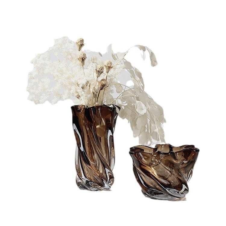 现代轻奢创意咖色玻璃花瓶摆件样板间客厅玄关水培花器高级感摆件