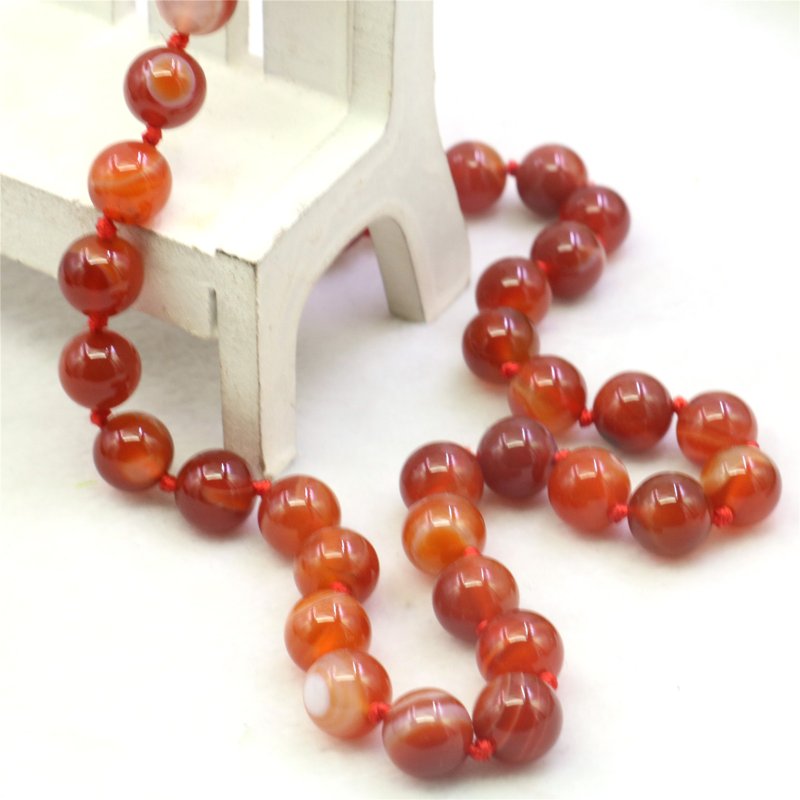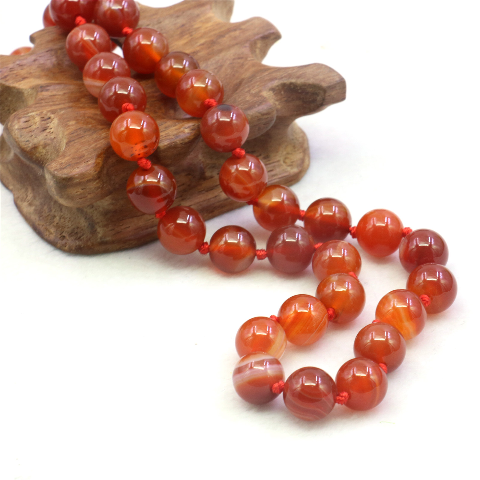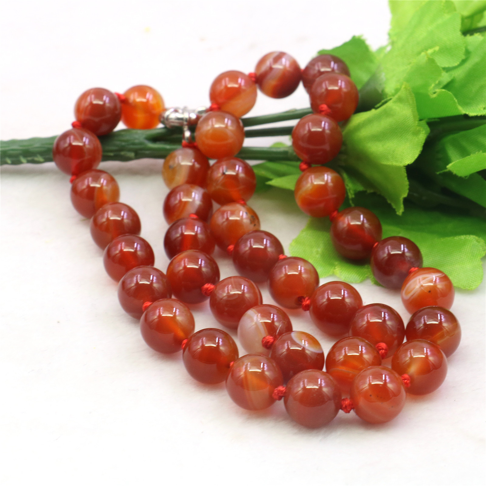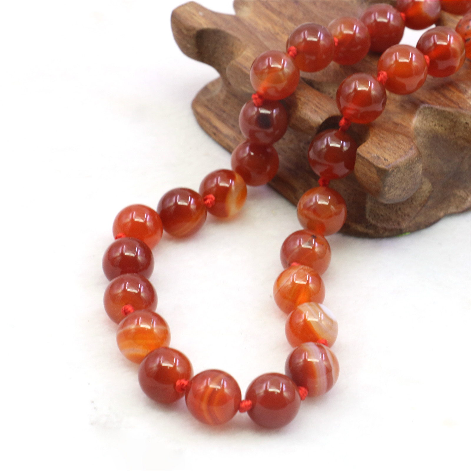 10mm天然橙色条纹玛瑙圆珠项链 手工串半宝石配延长链短链项饰女