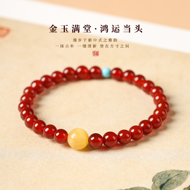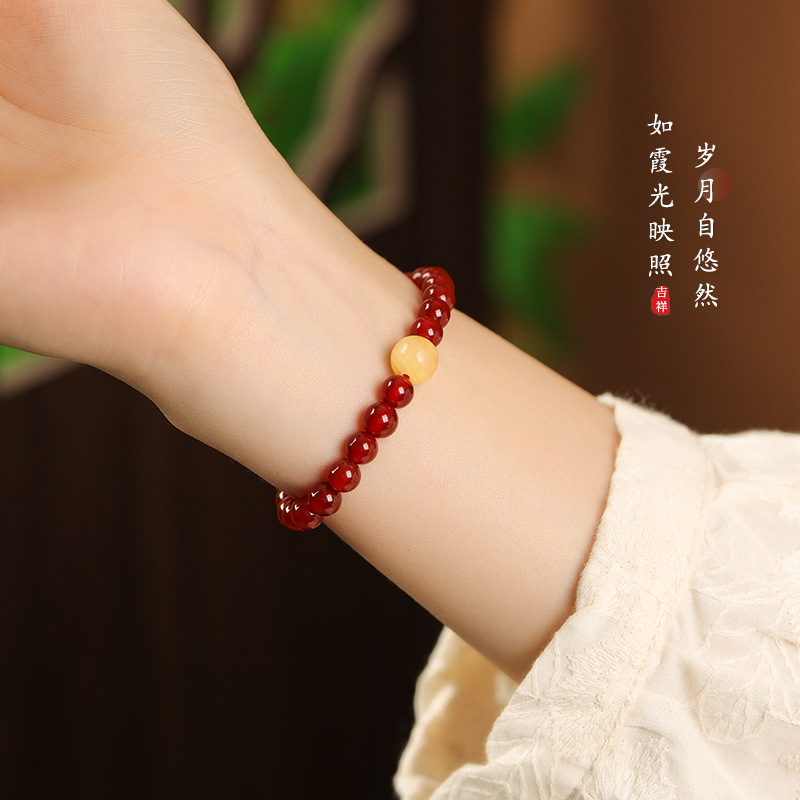 新中式东方古韵2025本命年红玛瑙手串转运珠米黄玉松石手链女士款