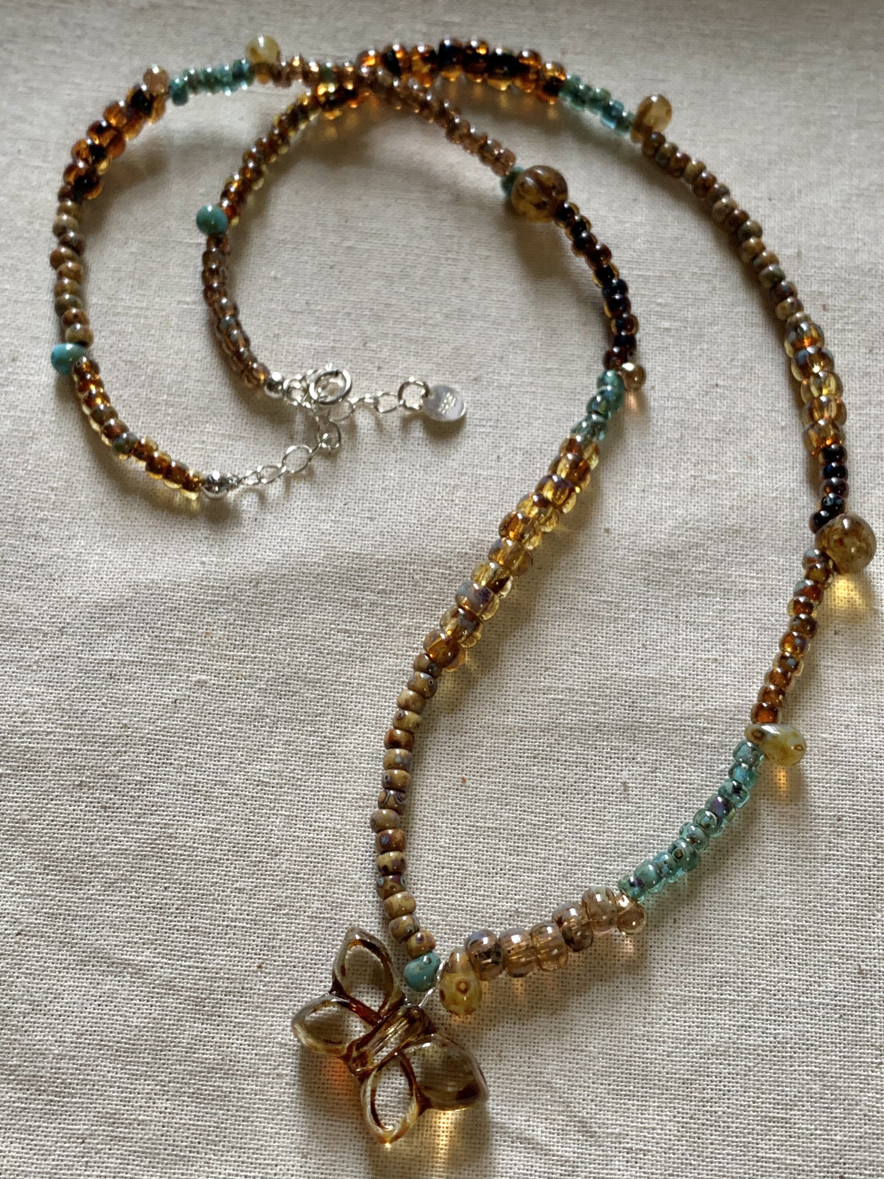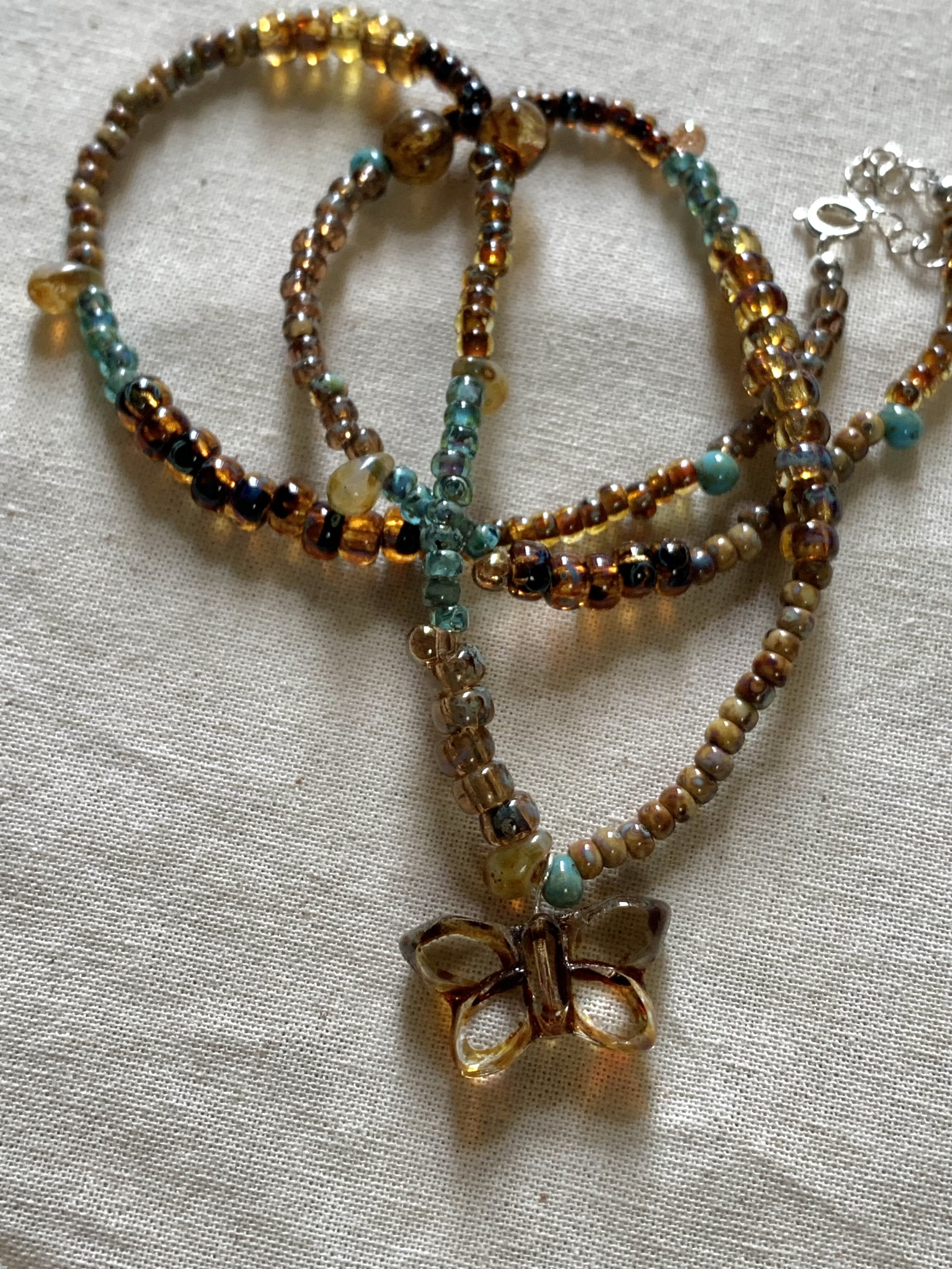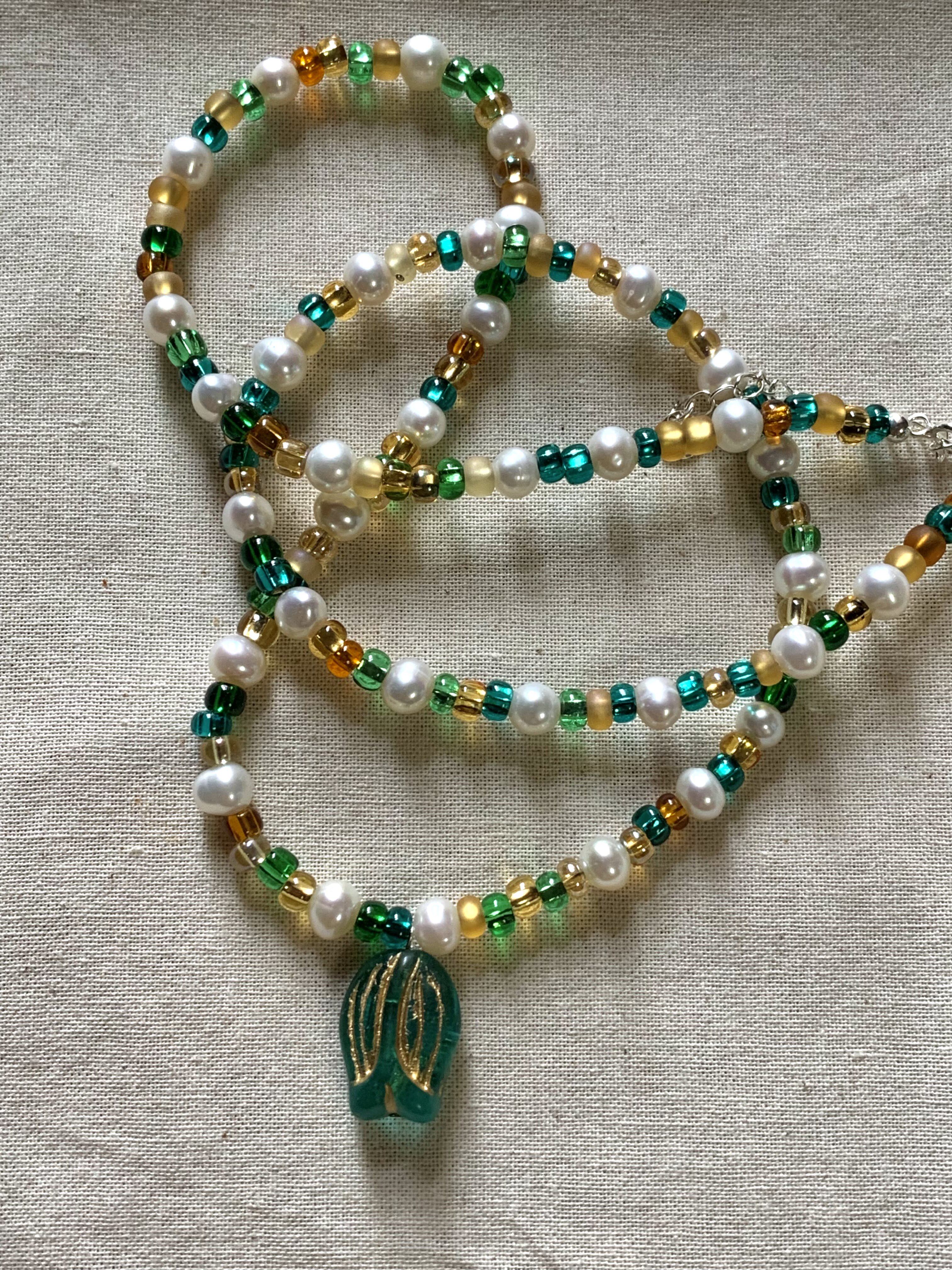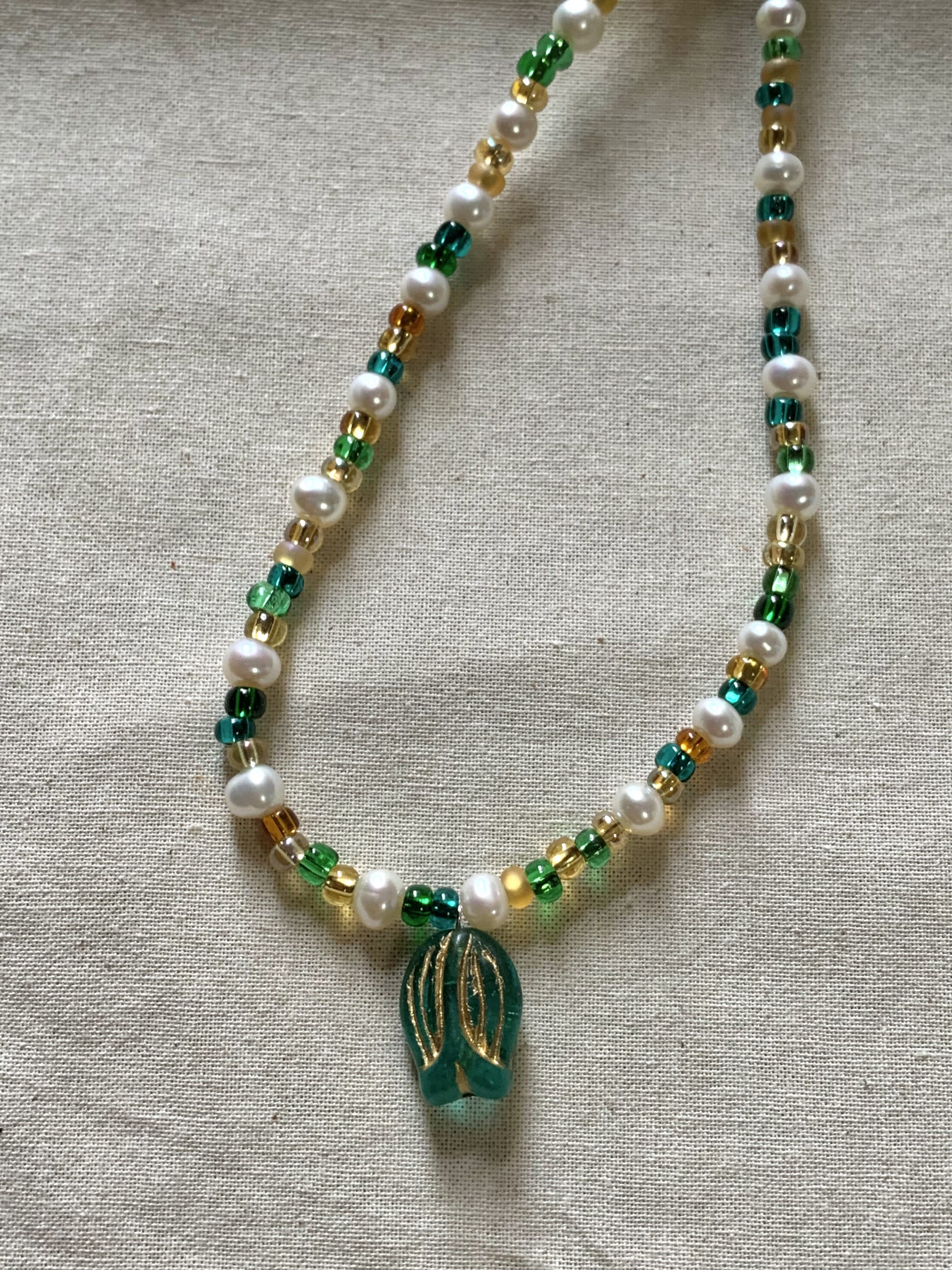 原创设计敦煌配色中古风少女琉璃清新绿串珠项链vintage