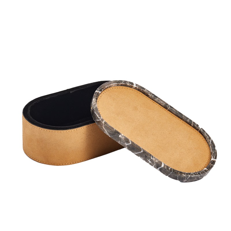 皮革装饰盒衣帽间m首饰收纳盒摆件样板间卧室电视柜软装圆形漆盒