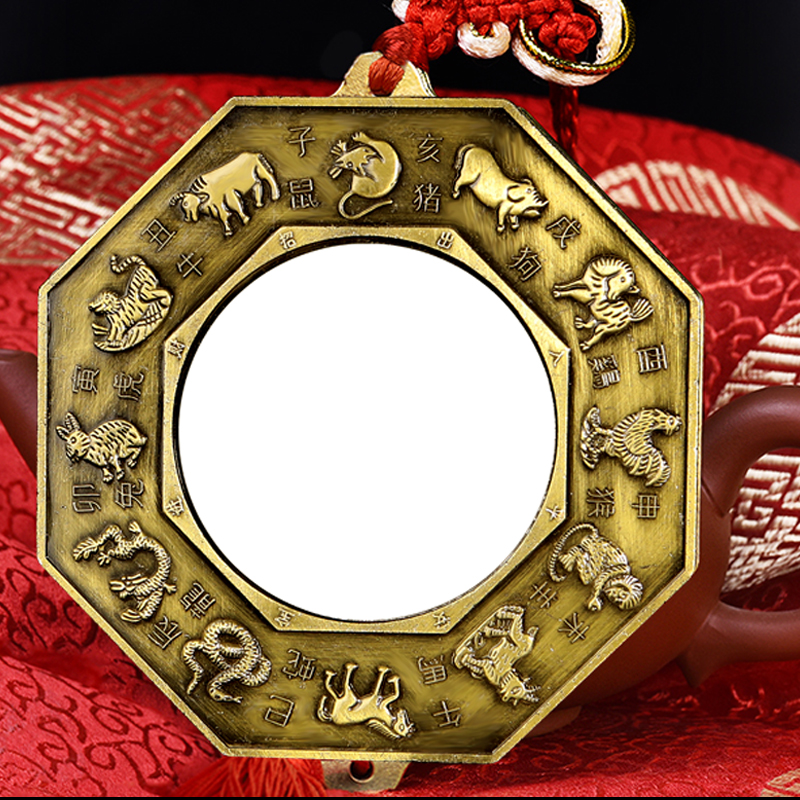 太极十二生肖八卦镜平镜家用镜子阳台小挂件阴阳太极门口合金摆件