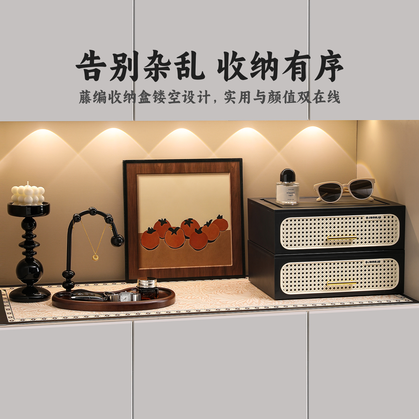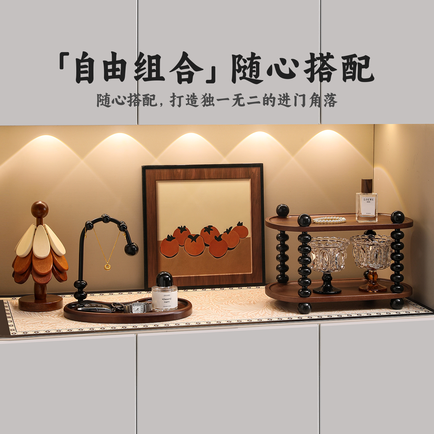 中古风入户玄关装饰摆件放钥匙收纳装饰画进门口法式复古鞋柜软装