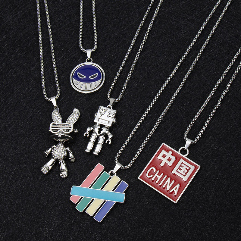 新款潮牌项链小熊男女甜酷可爱吊坠时尚长款毛衣链设计感配饰钛钢