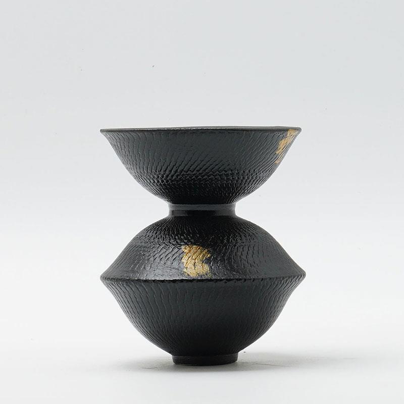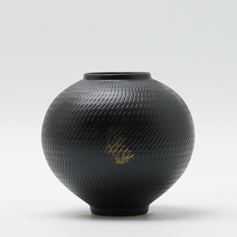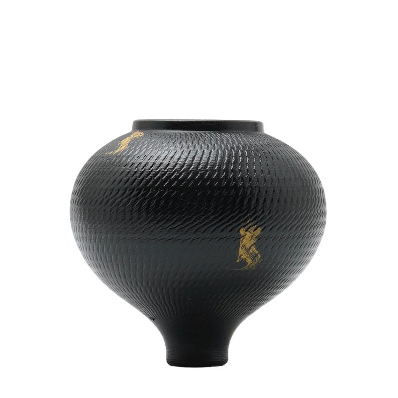 新中式创意黑色小陶瓷家居客厅插花花瓶玄关电视柜酒柜摆设装饰品