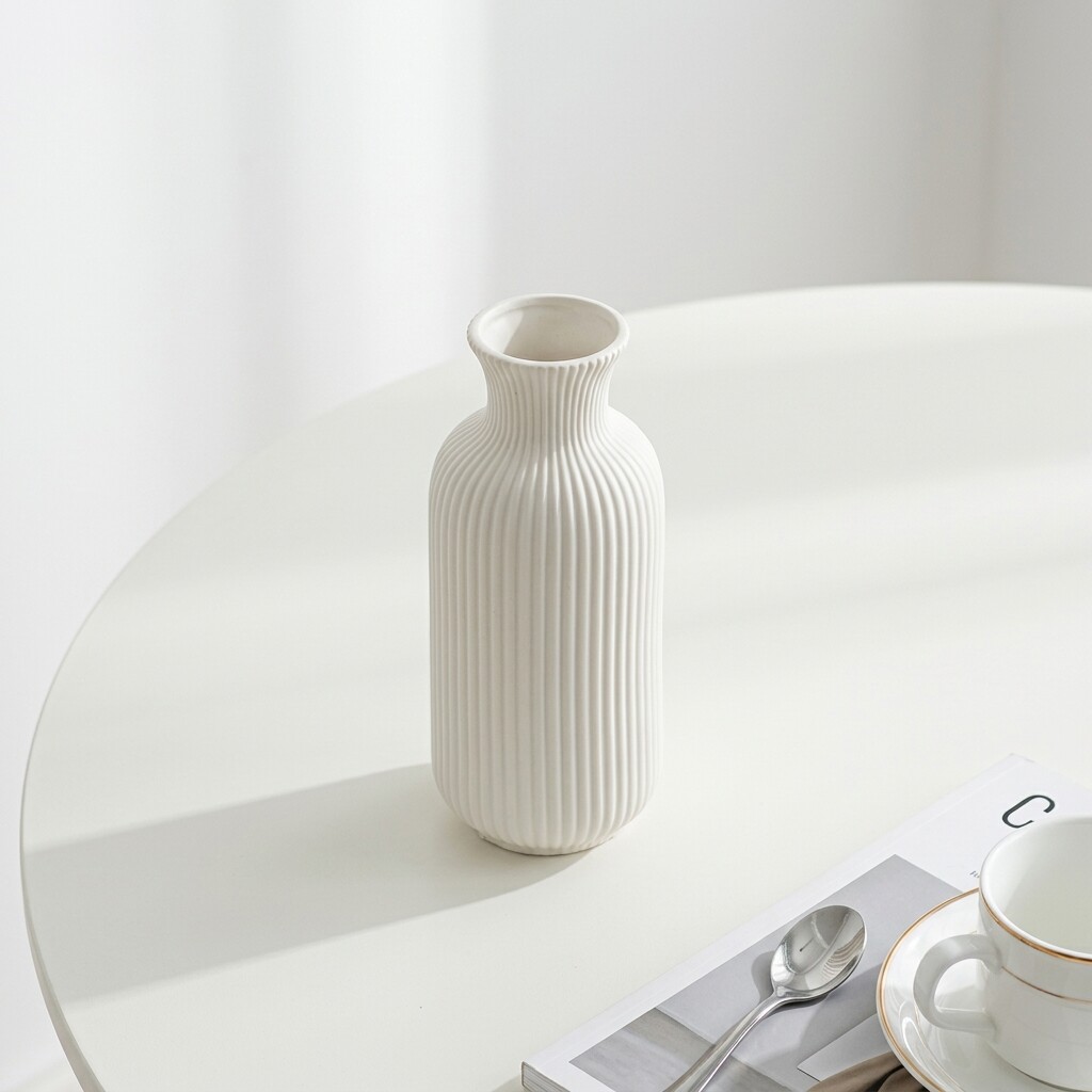 现代简约白色陶瓷花瓶客厅玄关桌面装饰摆件竖条纹竖立花器
