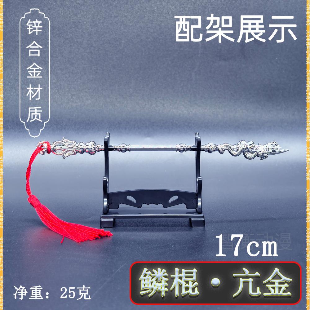 古代迷你兵器孙悟17cm麟棍亢金合金武器空模型金属工艺品桌面摆件