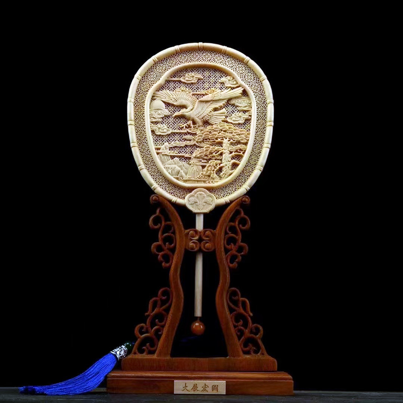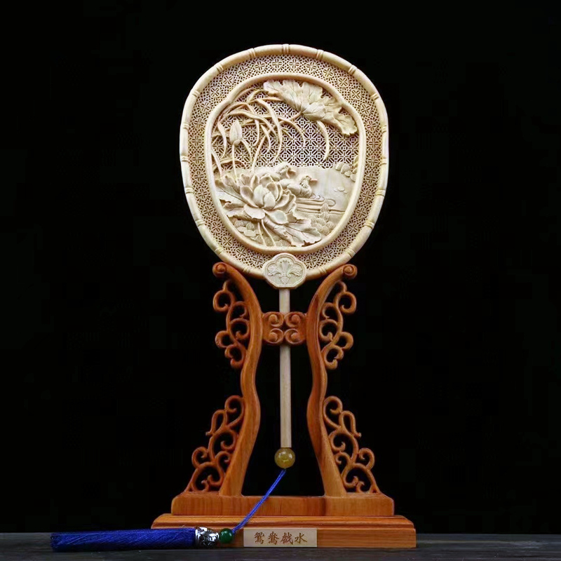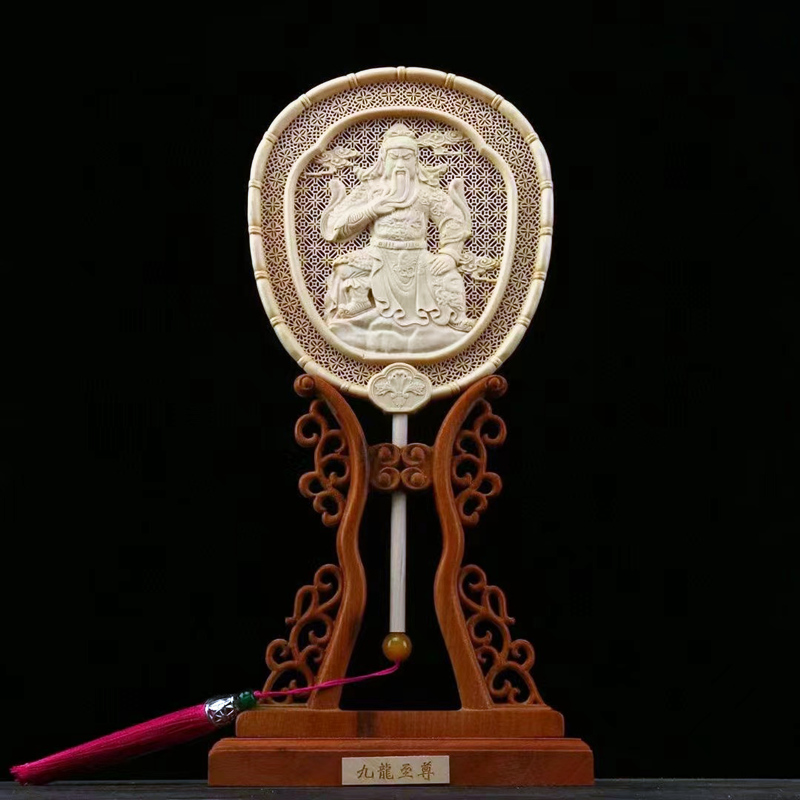 木扇摆件中式古典宫扇家居装饰玄关木雕扇子龙关公达摩龙凤八仙