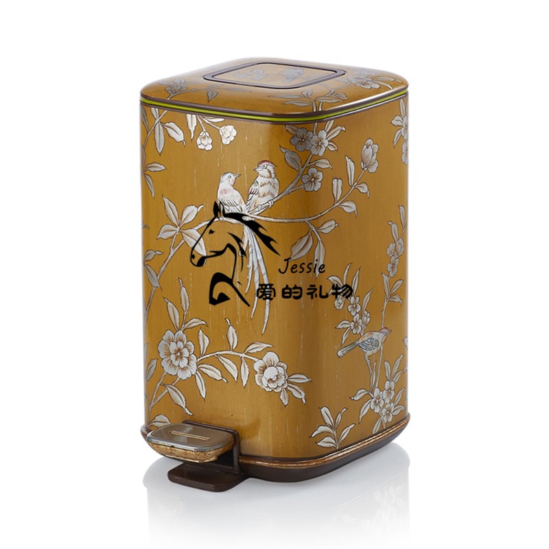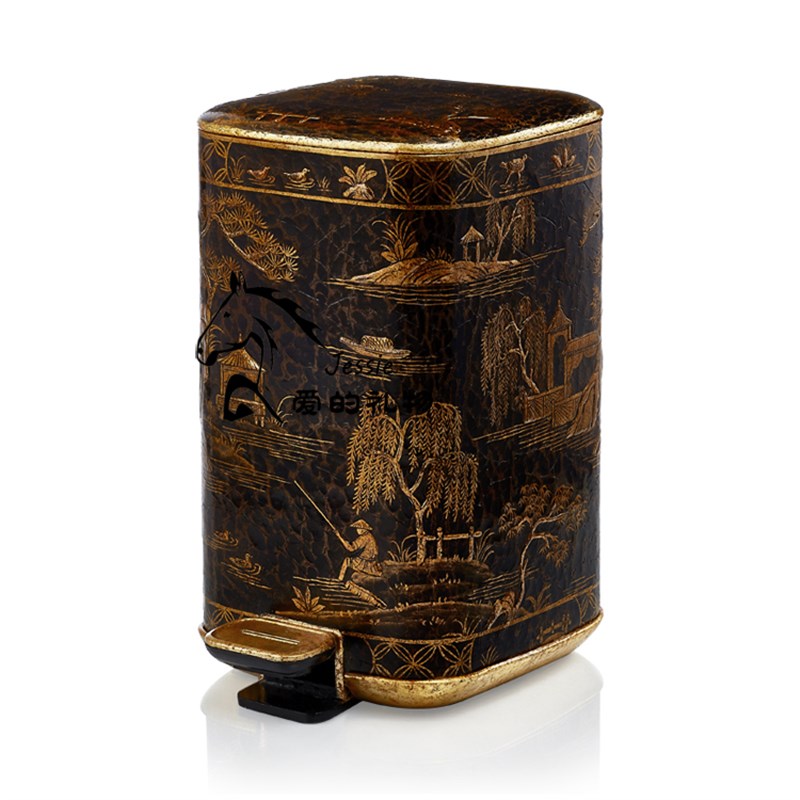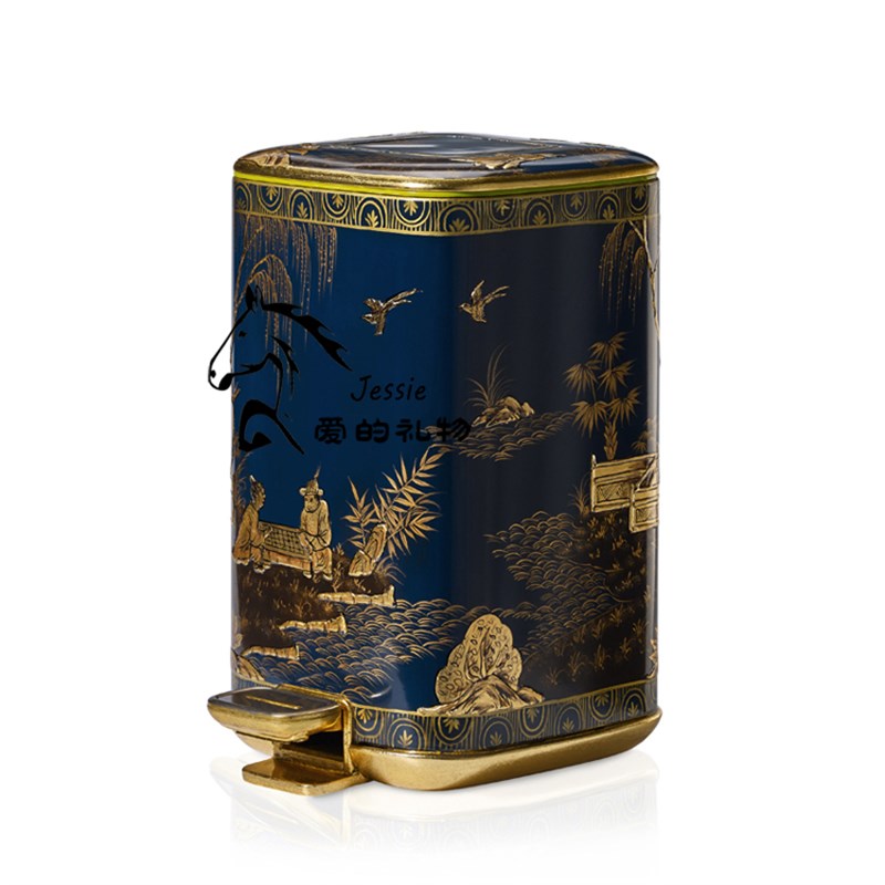狮落皇庭高端皇室纯手工彩绘新款艺术摆件陶瓷配铜垃圾桶