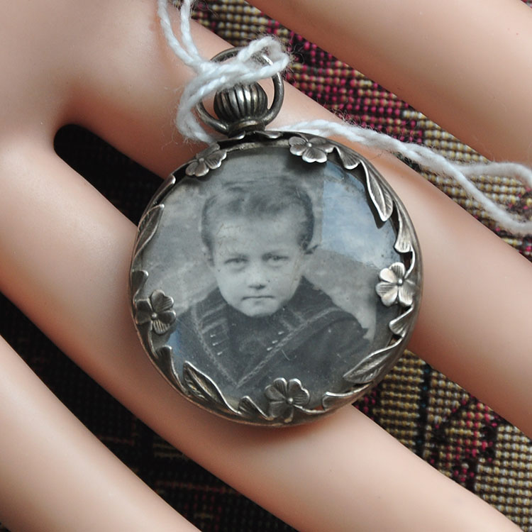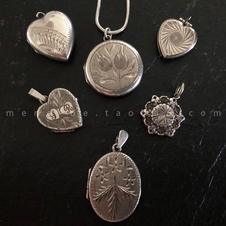 Vintage西洋古董欧洲手工纯银雕刻花纹相片香膏盒吊坠项坠
