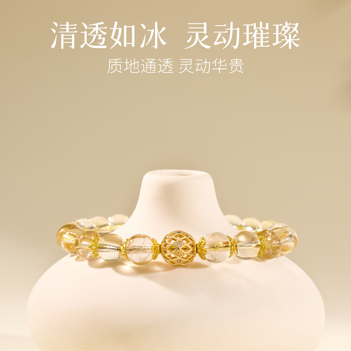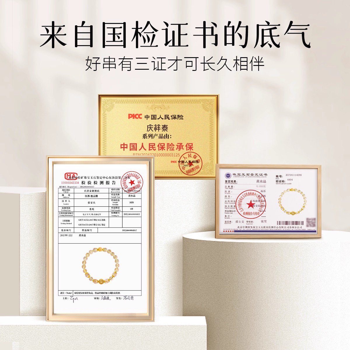 庆祥泰天然黄水晶手串招财手链转运珠女款女友官方旗舰店毕业礼物