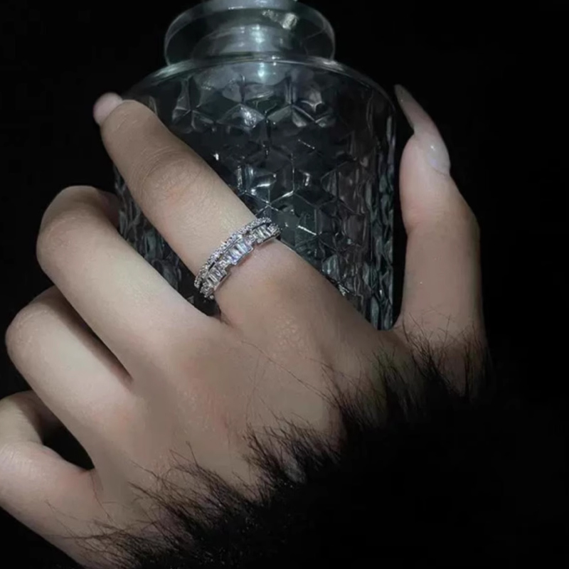 srrmhyn小众设计高级感镶钻超闪锆石双层戒指女ins开口可调节指环