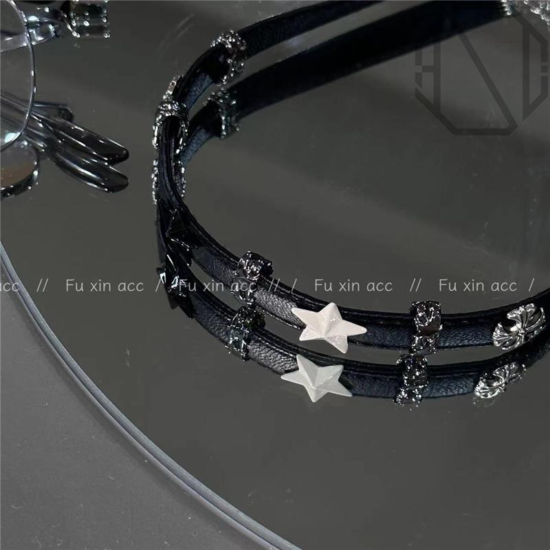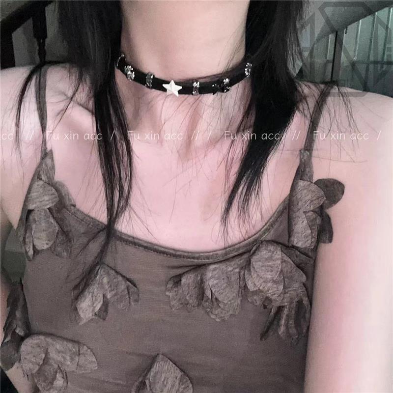 暗黑辣妹黑白色五角星拼接黑色女项圈Y2k高级锁骨链脖子配饰秋冬