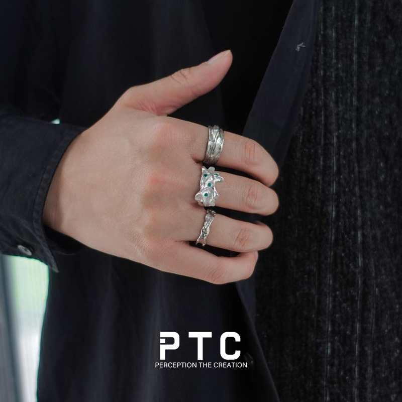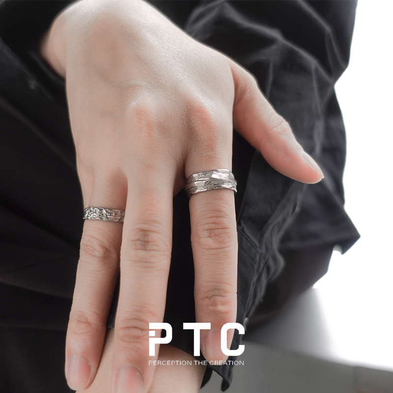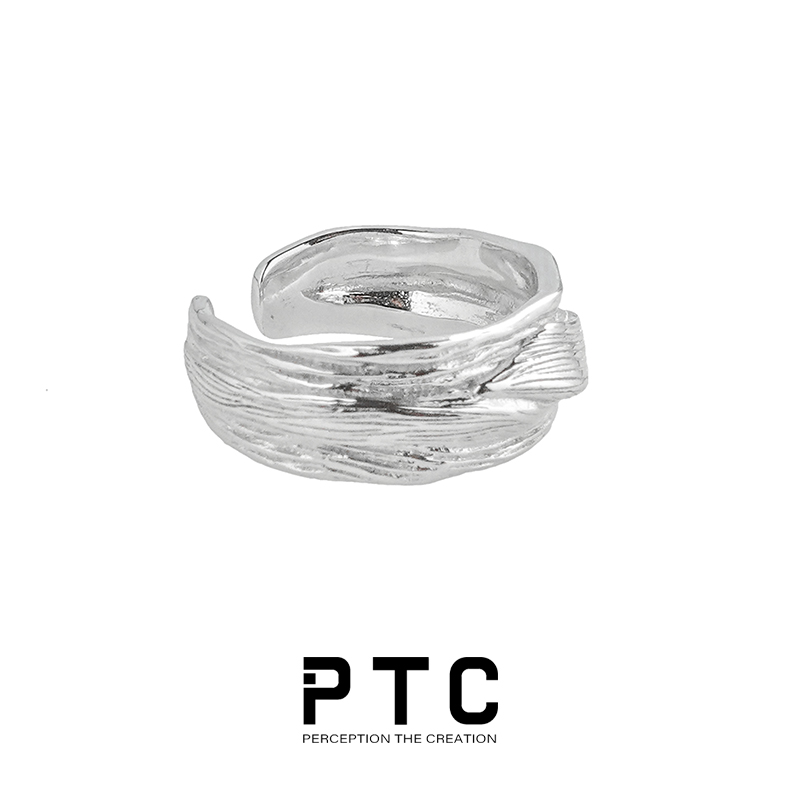 PTC S925纯银冷淡风不规则线条纹理小众设计戒指简约个性男女中性