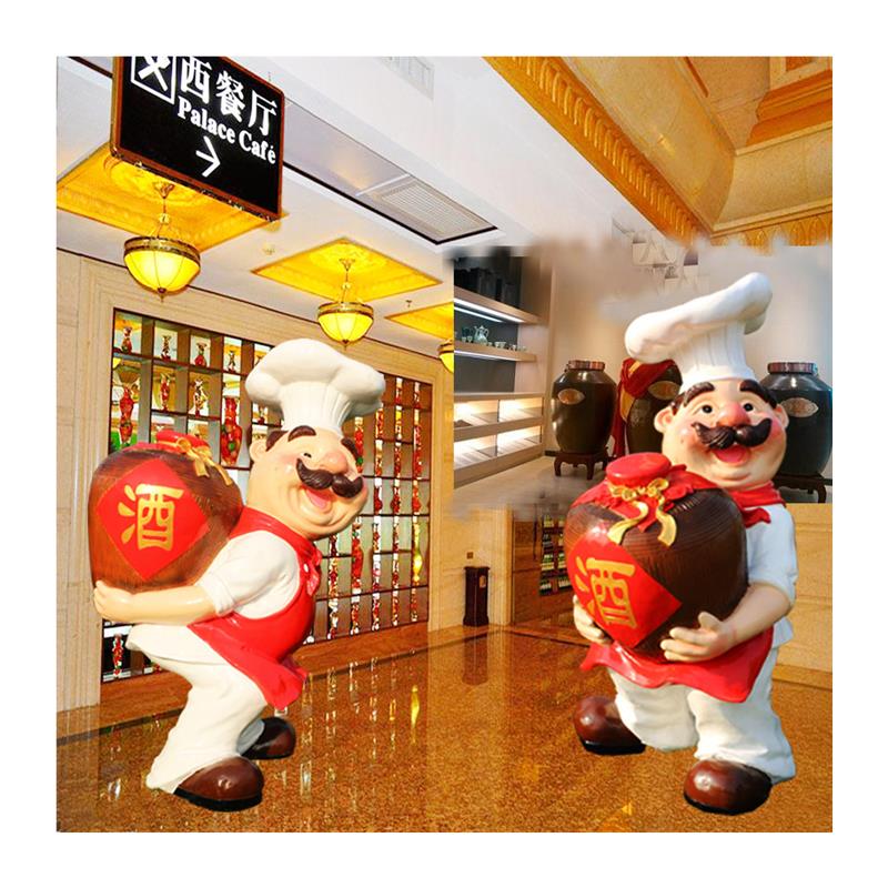 玻璃纤维卡通厨师人物雕塑饭厅酒店创意美陈饭店大型迎宾装饰品摆