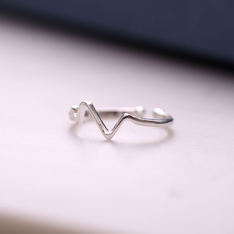 美汝仙 纯银戒指心动闪电开口单戒心电图女戒时尚银饰轻奢高级感